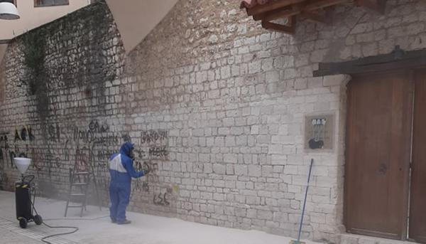Καθαρό και απαλλαγμένο από γκράφιτι και συνθήματα παραδίδεται το εμβληματικό «Αρχοντικό Πυρσινέλλα».