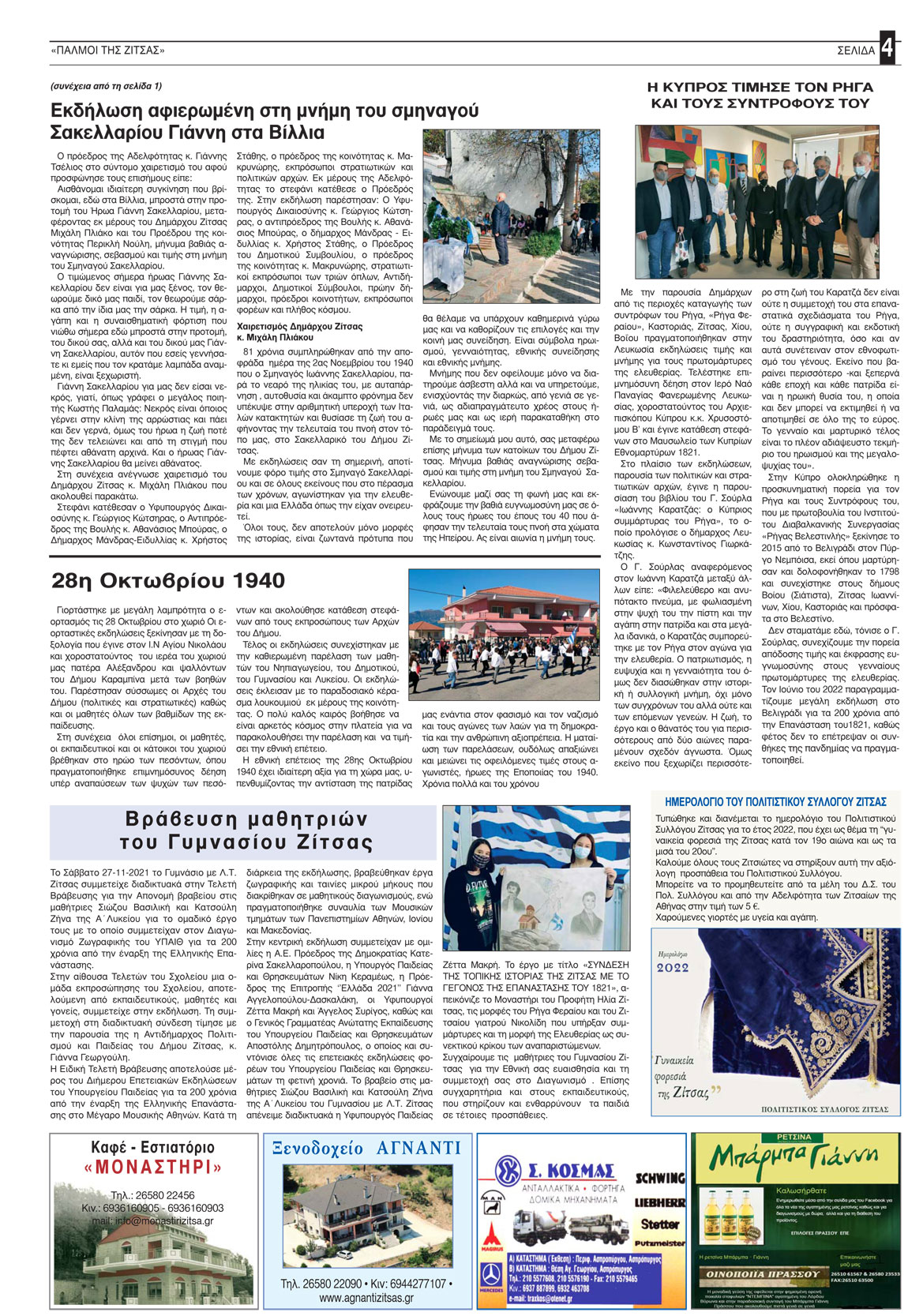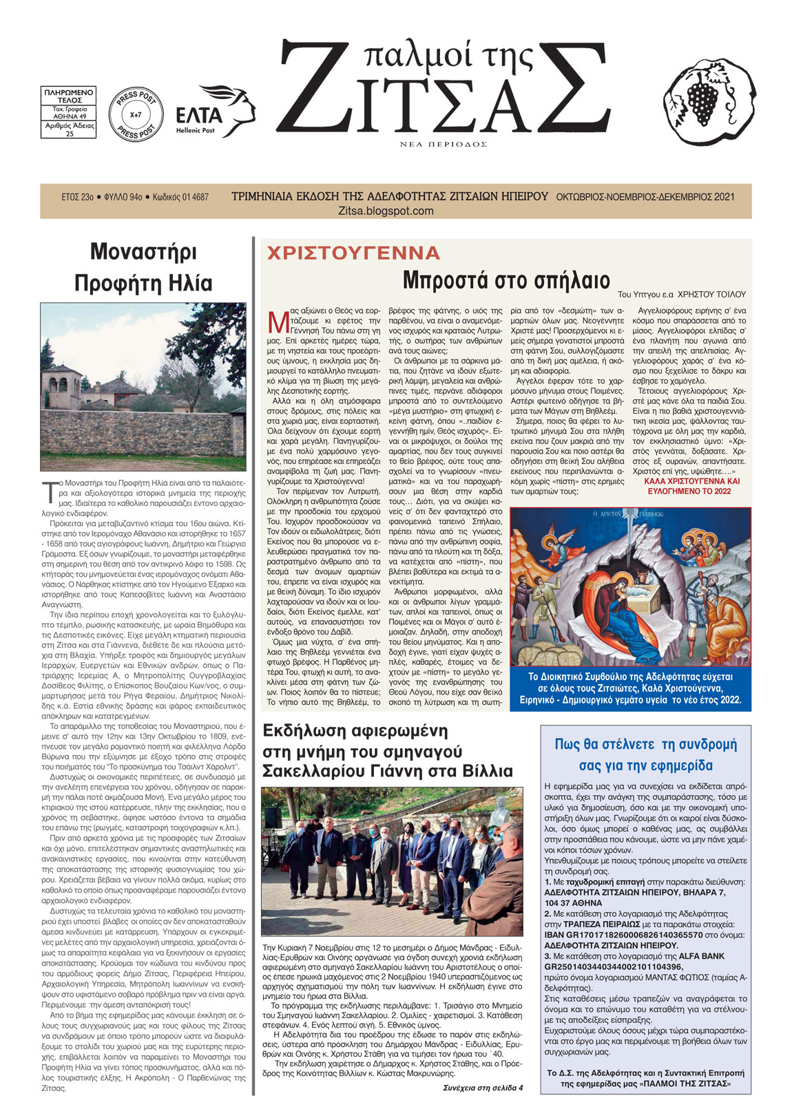 Εφημερίδα Αδελφότητας Ζιτσαίων Ηπείρου.Αριθμός φύλλου 94.Οκτώβριος-Νοέμβριος-Δεκέμβριος 2021.Καλή Ανάγνωση