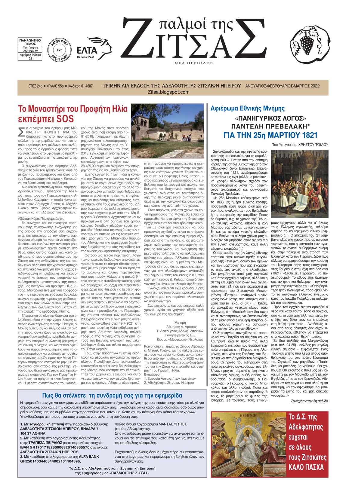Εφημερίδα Αδελφότητας Ζιτσαίων Ηπείρου.Αριθμός φύλλου 95. Ιανουάριος-Φεβρουάριος-Μάρτιος 2022.Καλή ανάγνωση.