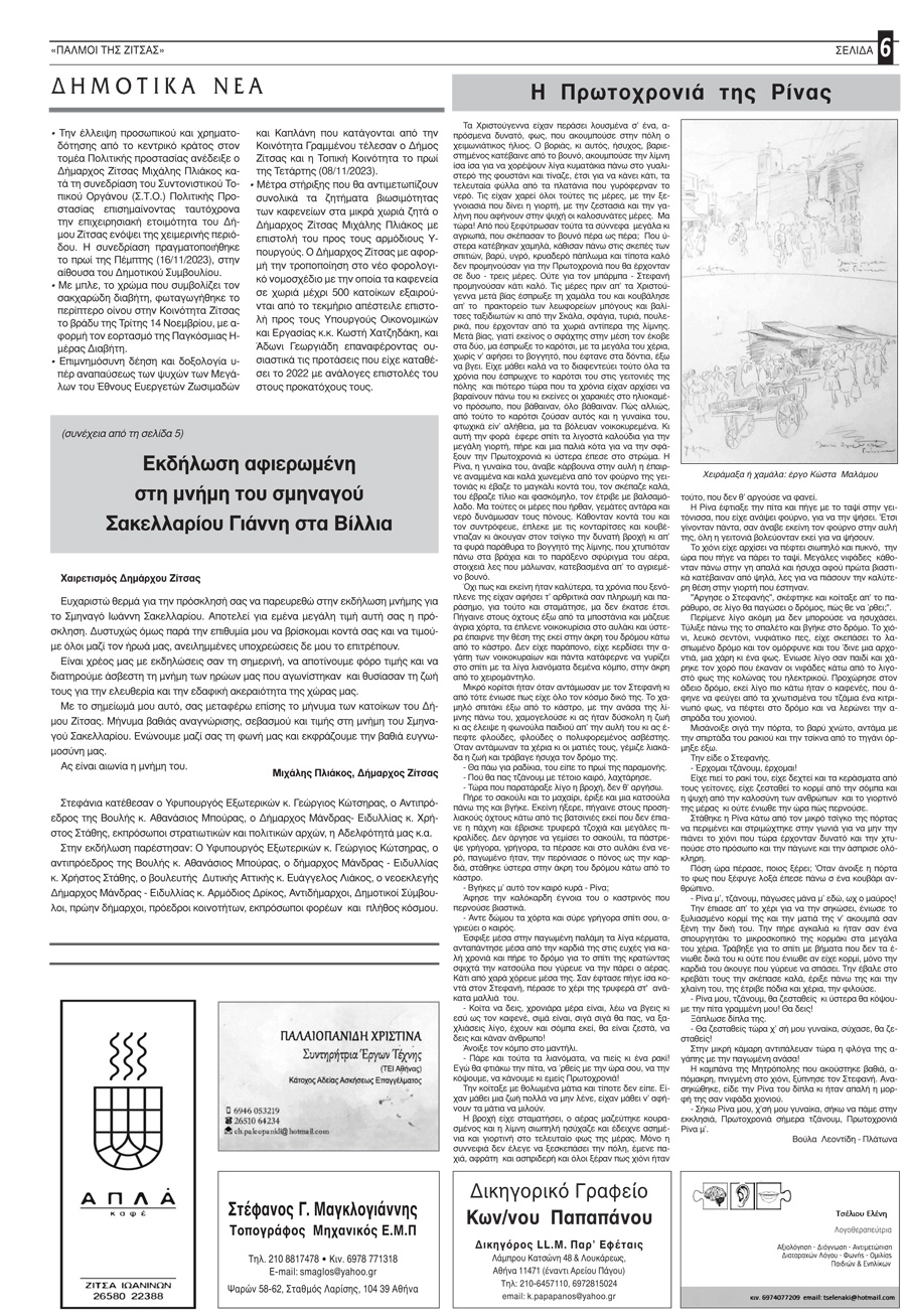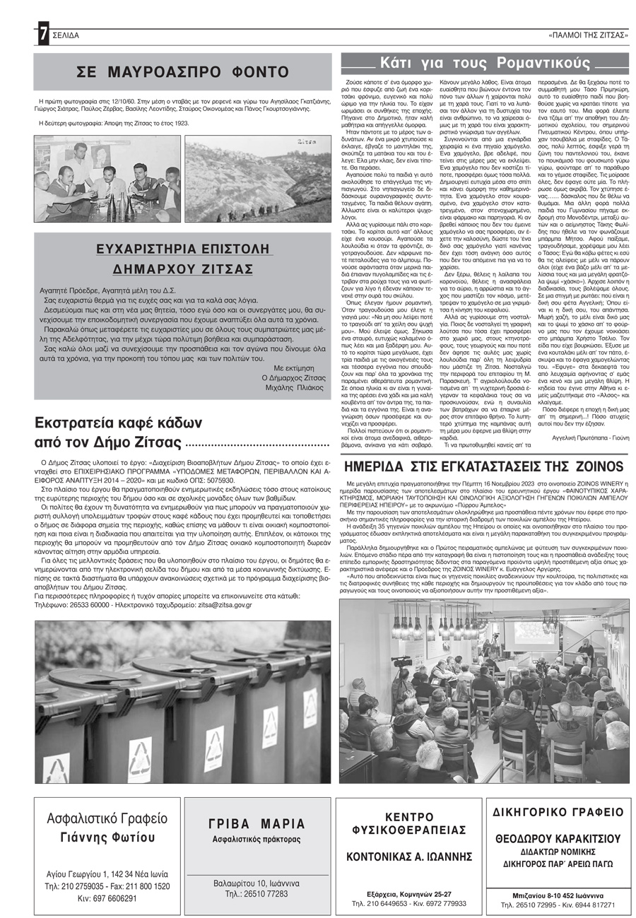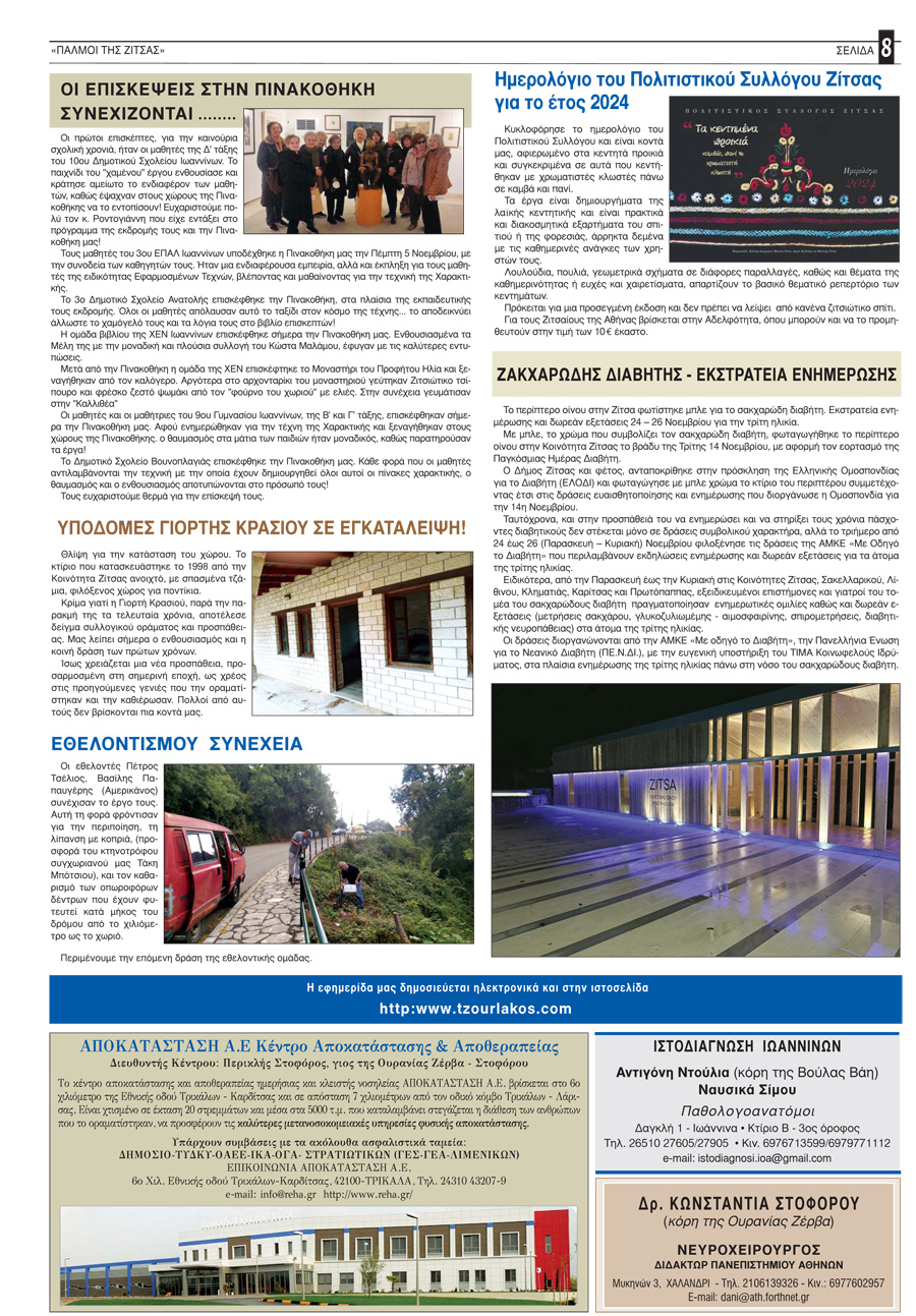 Εφημερίδα Αδελφότητας Ζιτσαίων Ηπείρου.Αριθμός φύλλου 102.Οκτώβριος-Νοέμβριος-Δεκέμβριος 2023