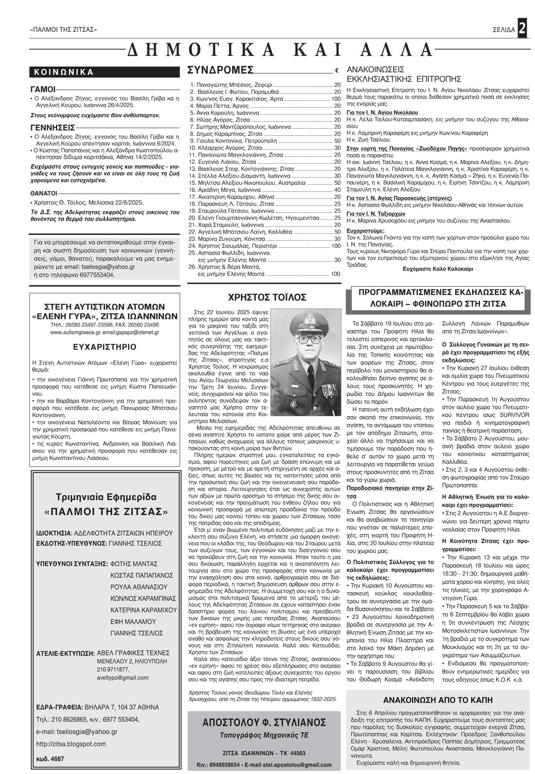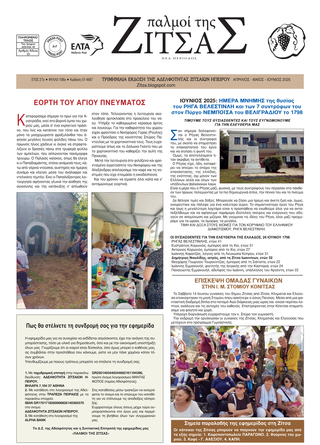 Εφημερίδα Αδελφότητας Ζιτσαίων Ηπείρου. Αριθμός φύλλου 108.Απρίλιος-Μάϊος-Ιούνιος 2025