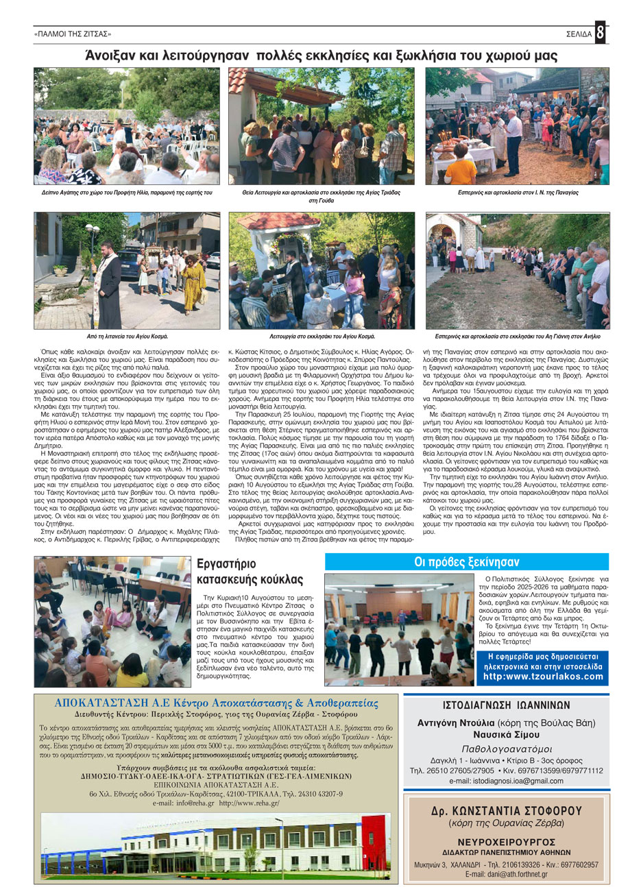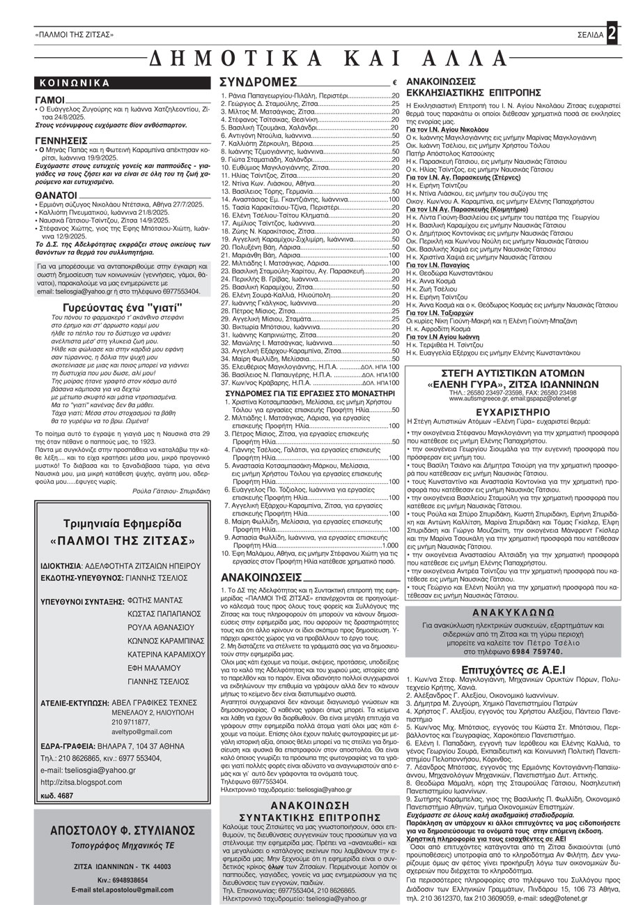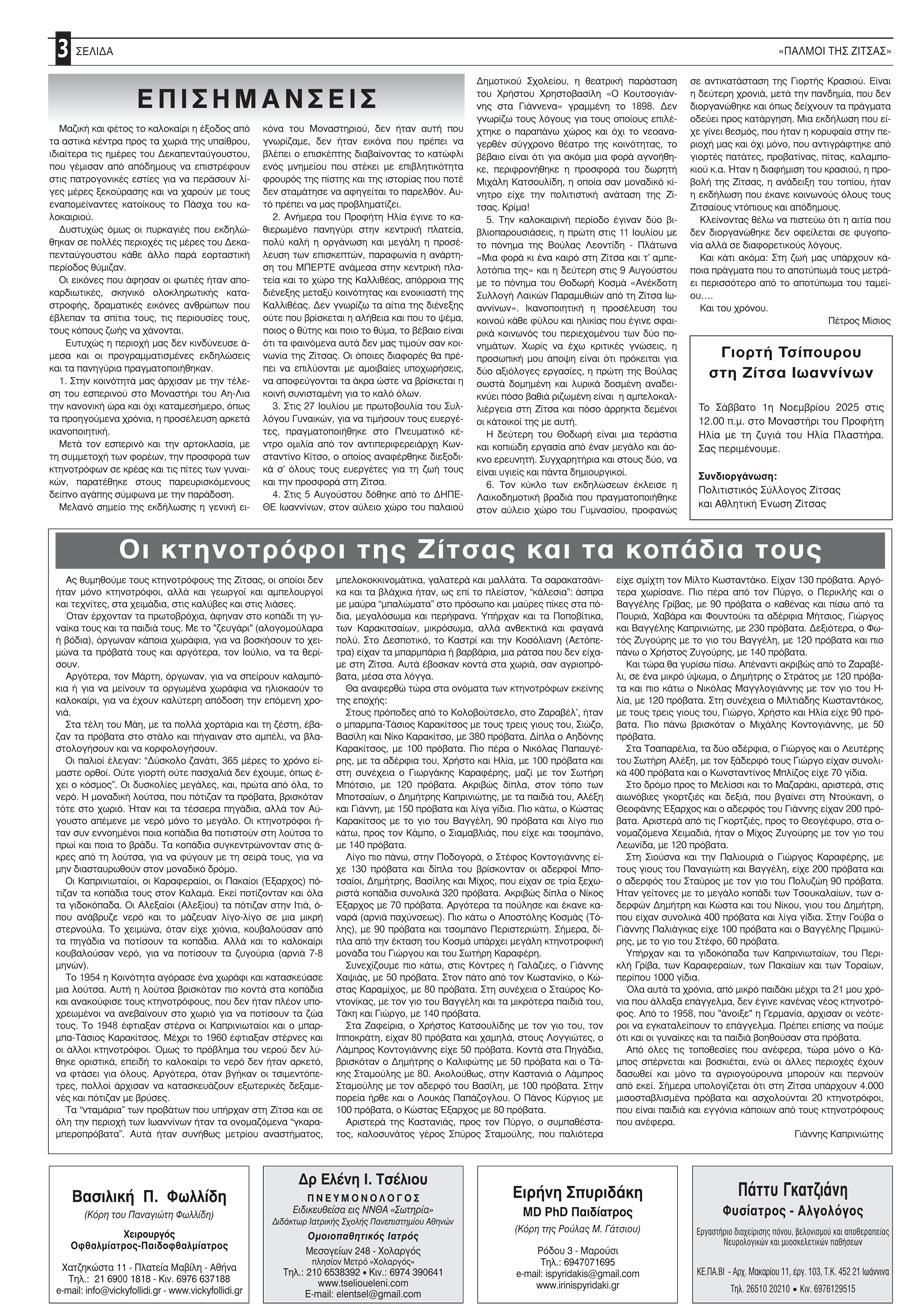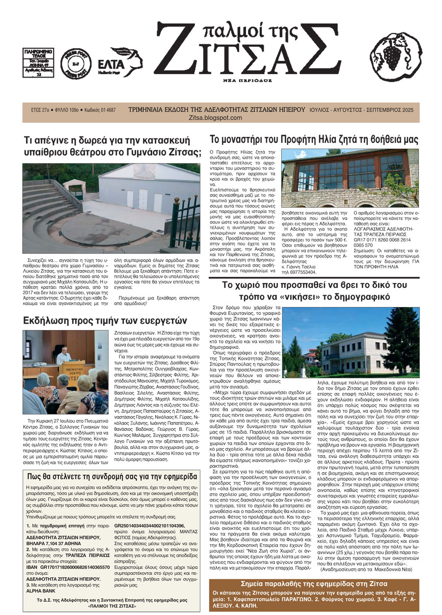 Εφημερίδα Αδελφότητας Ζιτσαίων Ηπείρου. Αριθμός φύλλου 109.Ιούλιος-Αύγουστος-Σεπτέμβριος 2025.