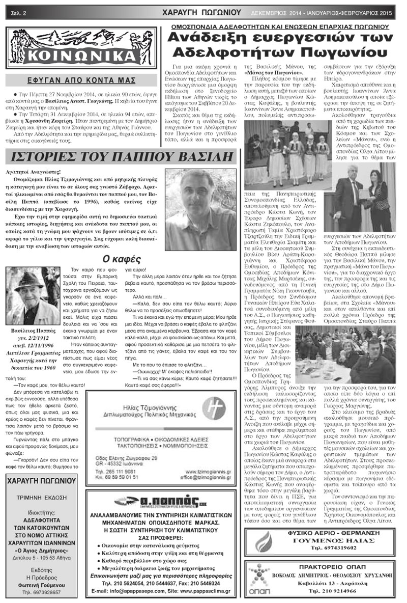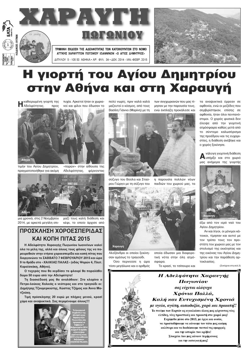 Εφημερίδα Αδελφ/τας Χαραυγής Πωγωνίου.Αρθμ.Φύλλου 34.Δεκέμβριος 2014 Ιανουάριος--Φεβρουάριος 2015