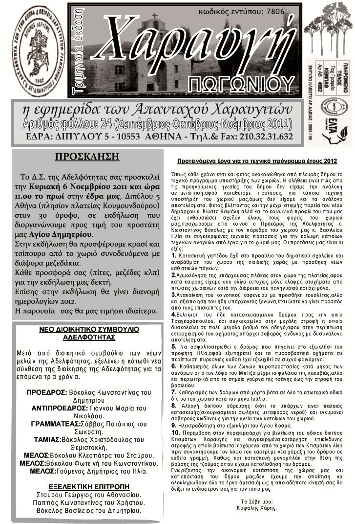 ΕΦΗΜΕΡΙΔΑ ΑΔΕΛΦΟΤΗΤΑΣ ΧΑΡΑΥΓΗΣ ΠΩΓΩΝΙΟΥ
