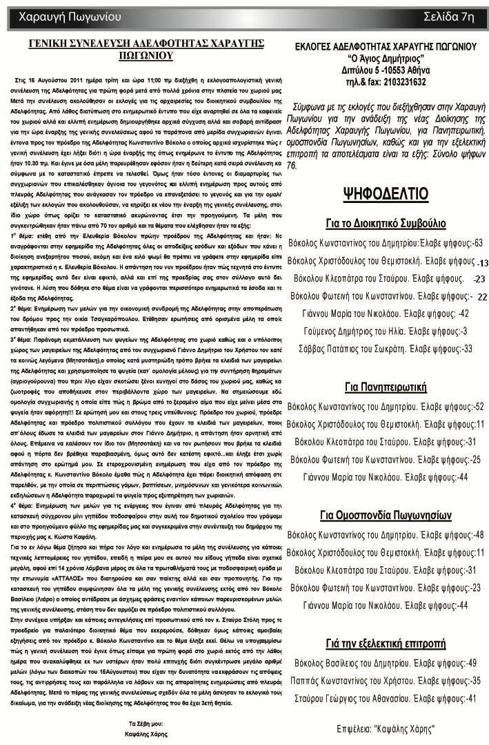 Φίλες και φίλοι αναγνώστες της εφημερίδας μας,θέλω να σας ενημερώσω πώς από τυπογραφικό λάθος στην σελίδα 7 της εφημερίδας και στο άρθρο των εκλογών της Αδελφότητας αδικήσαμε τον υποψήφιο Βόκολο Χριστόδουλο του Θεμιστοκλή γράφοντας πώς έλαβε μόνο 3 ψήφους.Το σωστό είναι 13 ψήφοι.Μετά από αυτό ζητάω προσωπικά συγνώμη από τον αξιοαγάπητο Χριστόδουλο,που είναι και ο ταμίας της Αδελφότητας και του υπόσχομαι προσωπικά στό επόμενο φύλλο της εφημερίδας να αποκατασταθεί το λάθος μας