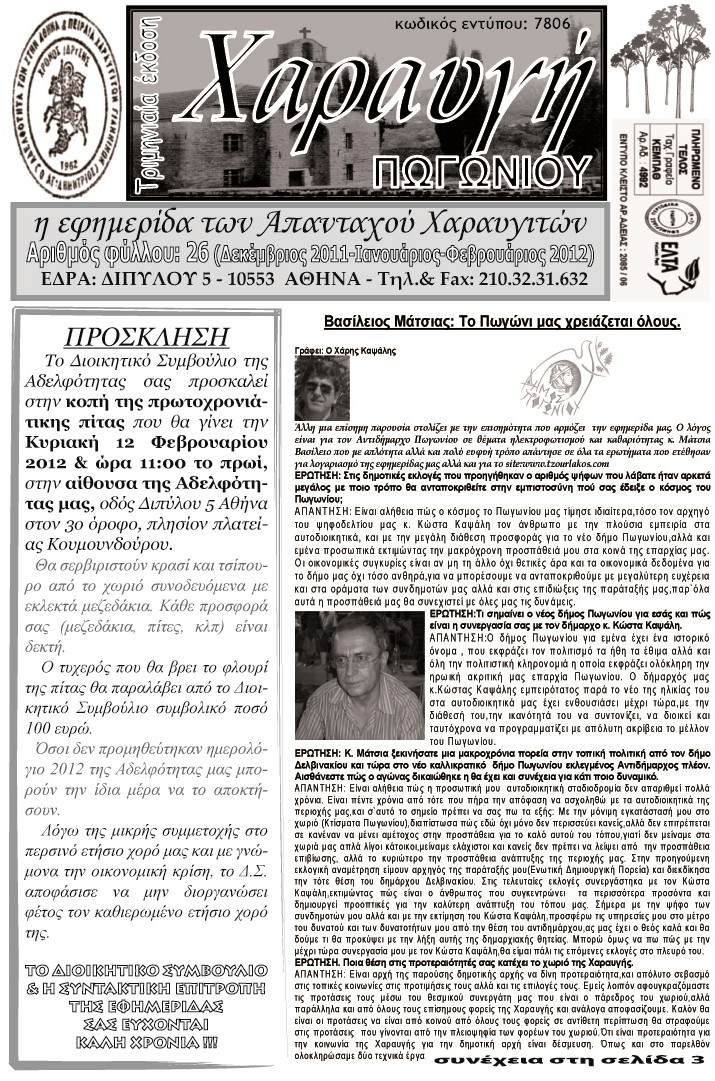 Αριθμός Φύλλου 26 Δεκέμβριος 2011-Ιανουάριος 2012-Φεβρουάριος 2012