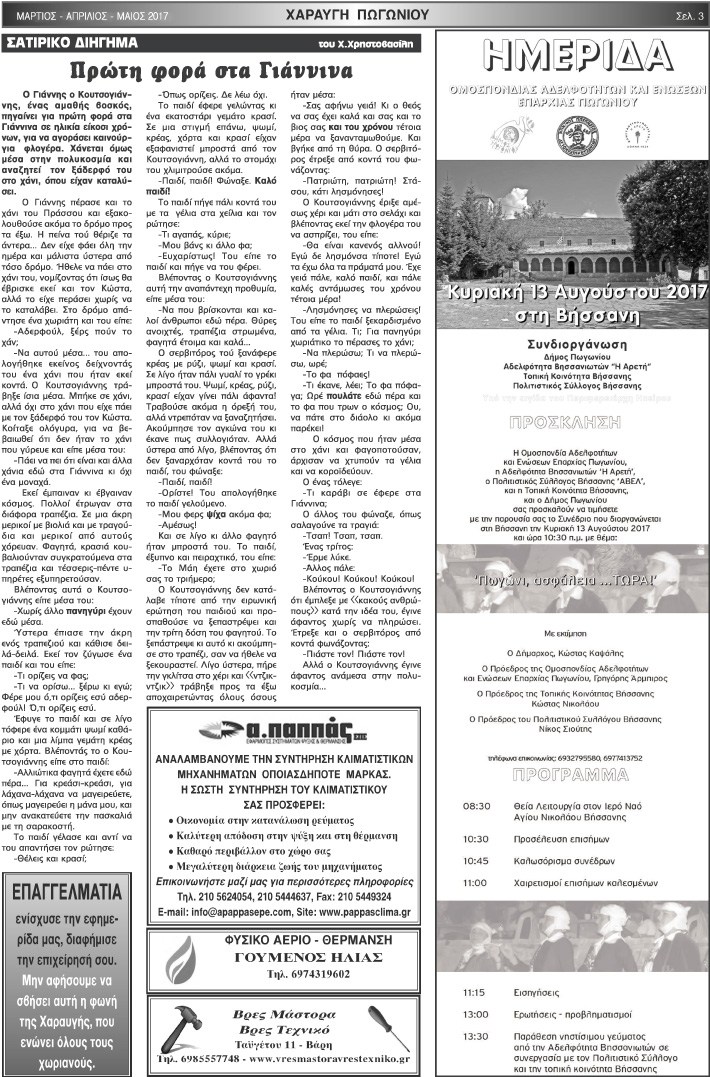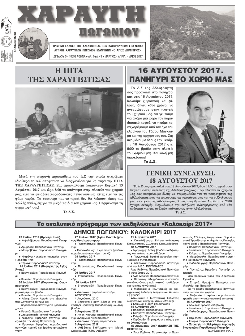 Εφημερίδα Αδελφ/τας Χαραυγής Πωγωνίου.Αριθμός φύλλου 43.Μάρτιος-Απρίλιος-Μαΐος 2017... Εφημερίδα Αδελφότητας Χαραυγής Πωγωνίου.Αριθμός φύλλου 43.Μάρτιος-Απρίλιος-Μαΐος 2017 Tweet Προηγούμενο Επόμενο