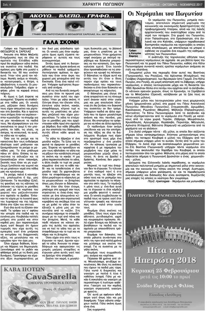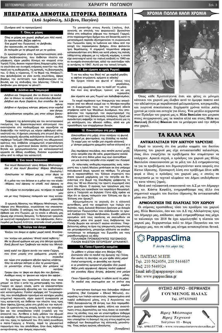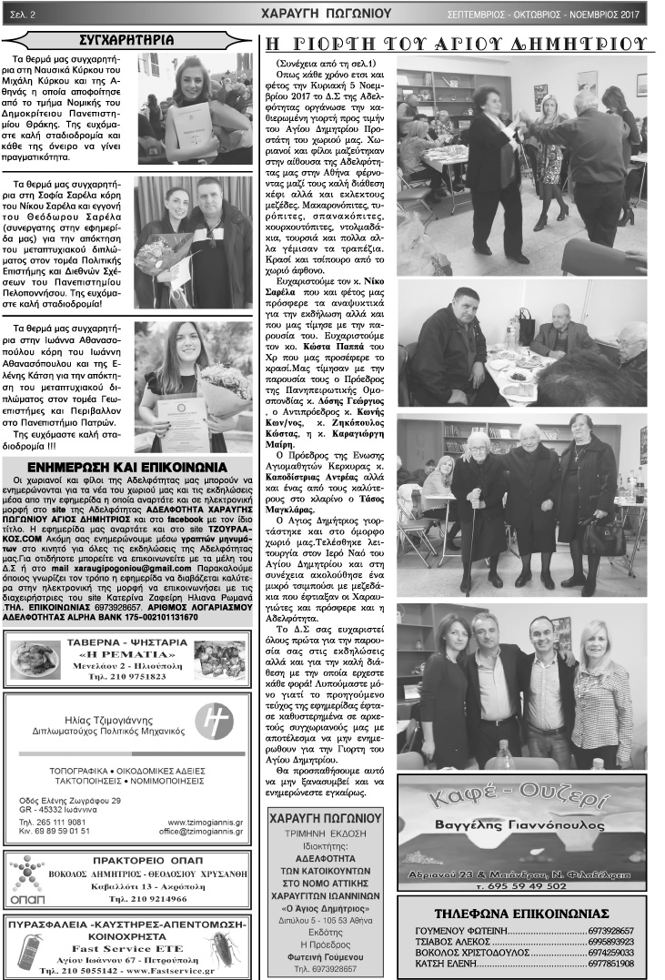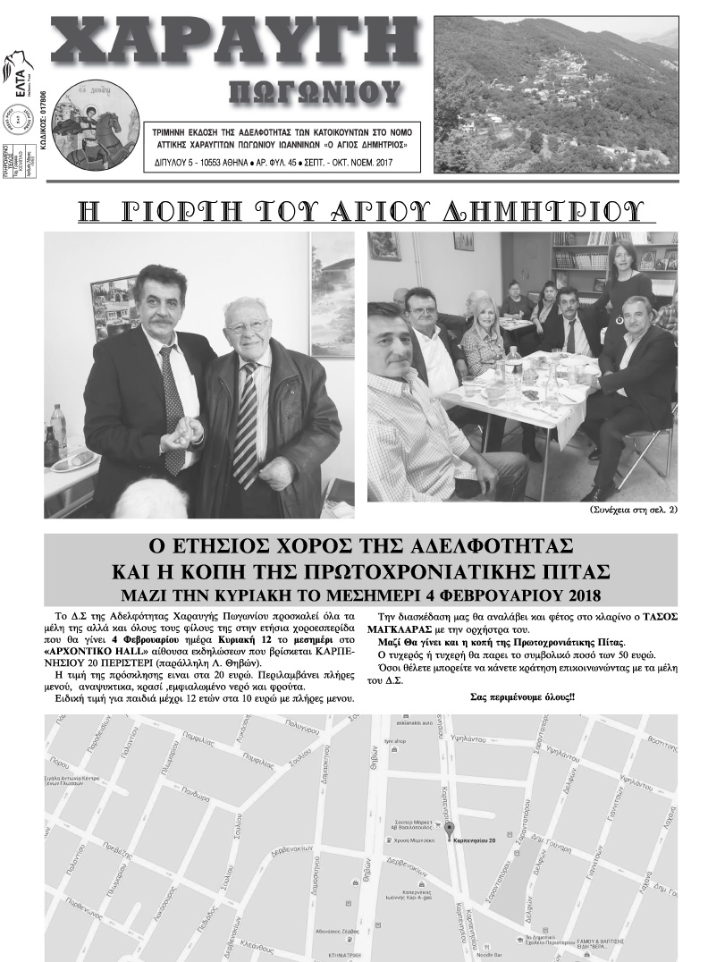 Εφημερίδα Αδελφότητας Χαραυγής Πωγωνίου.Αριθμός φύλλου 45.Σεπτέμβριος-Οκτώβριος-Νοέμβριος 2017.