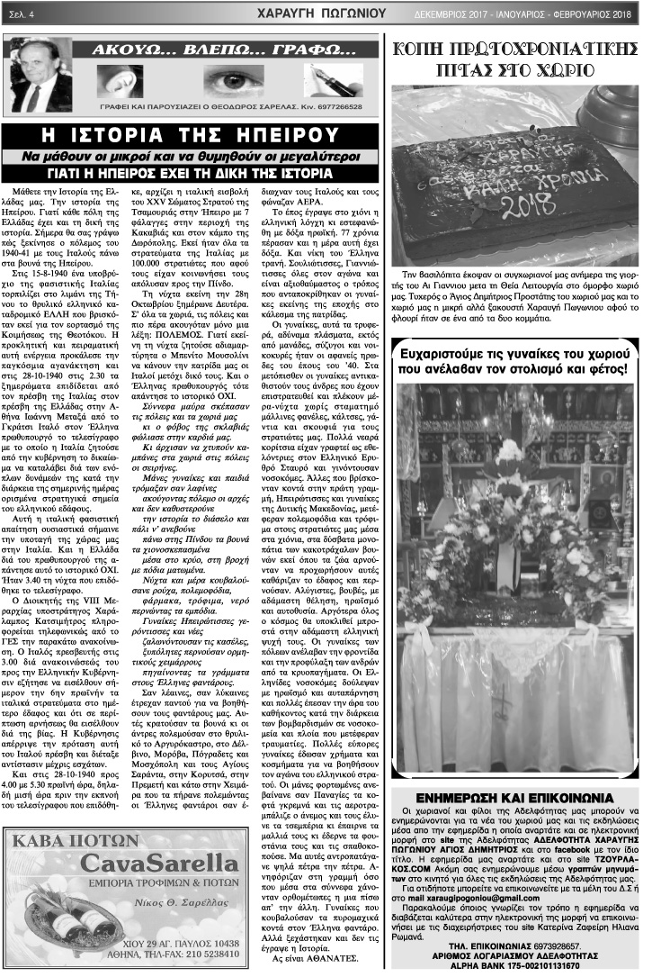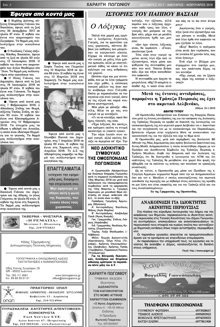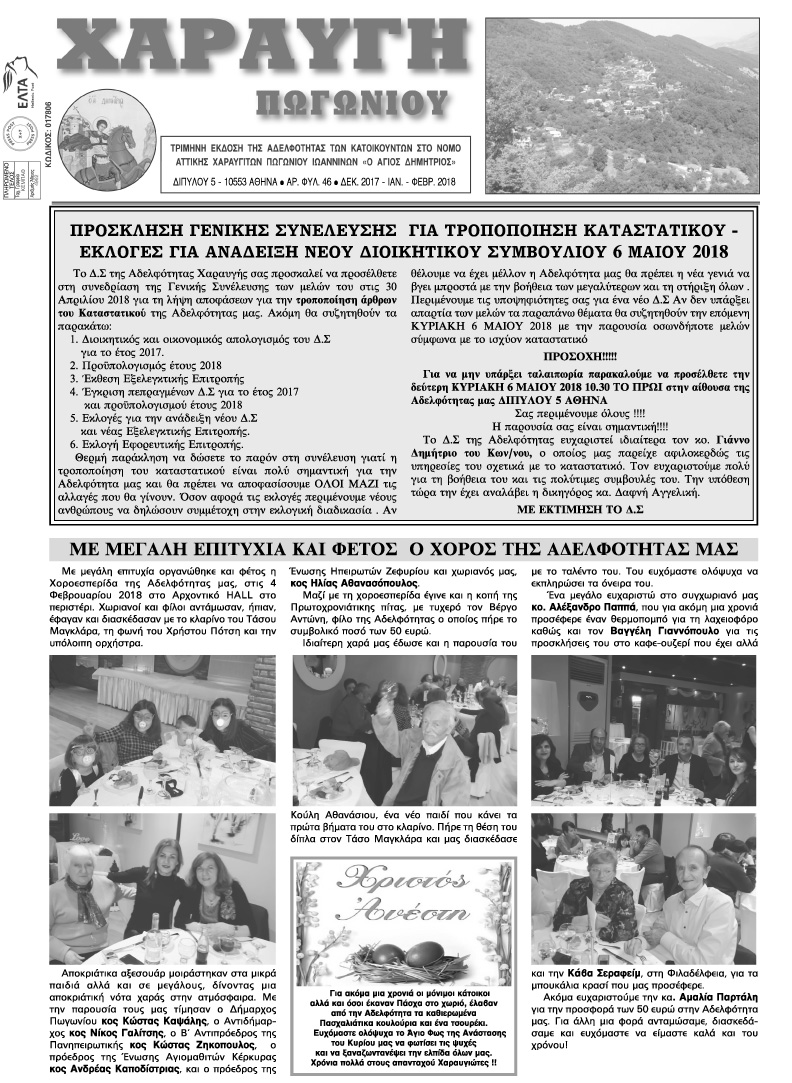 Εφημερίδα Αδελφότητας Χαραυγής Πωγωνίου.Αριθμός φύλλου 46.Δεκέμβριος 2017 Ιανουάριος--Φεβρουάριος 2018.
