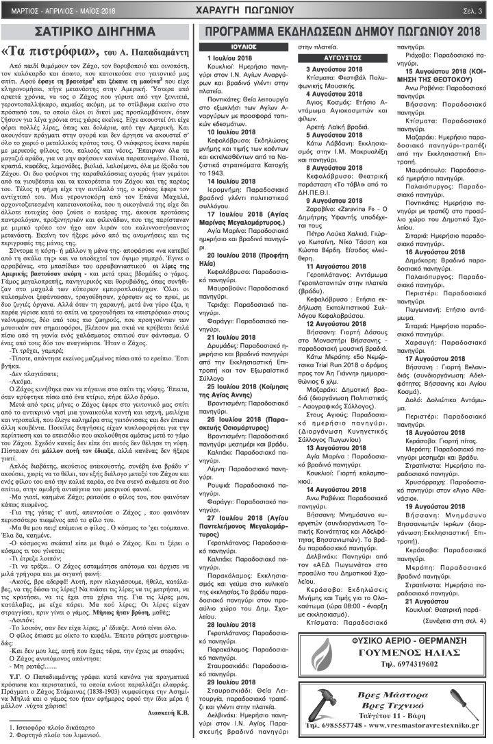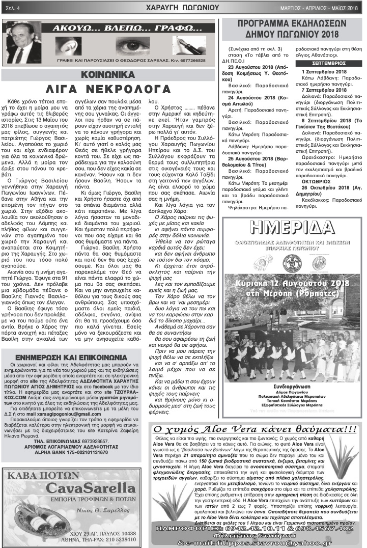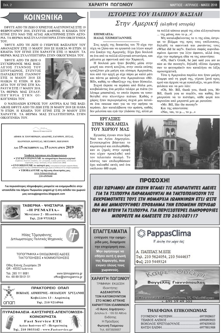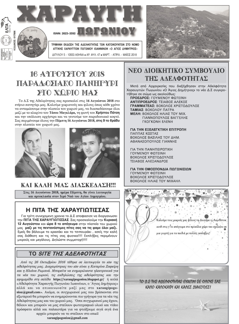 Εφημερίδα Αδελφότητας Χαραυγής Πωγωνίου.Αριθμ.Φύλλου 47.Μάρτιος-Απρίλιος-Μάϊος-2018