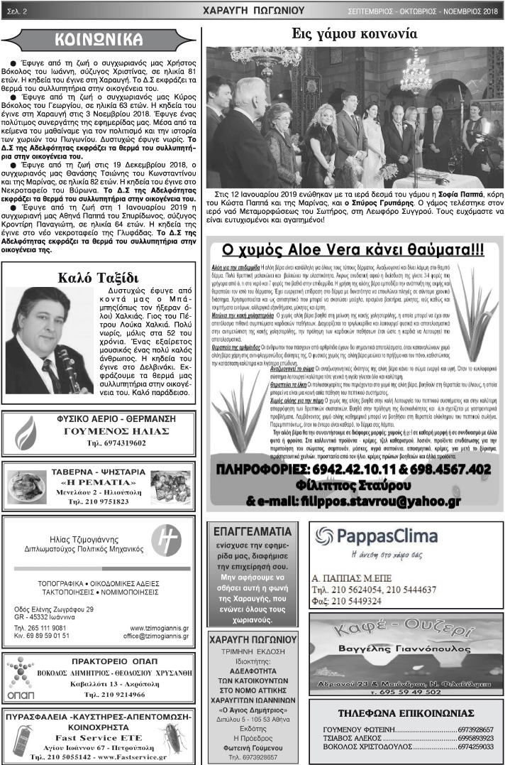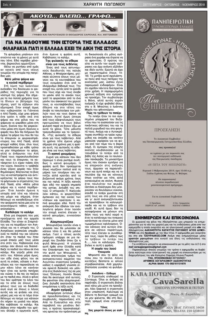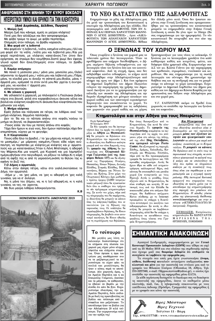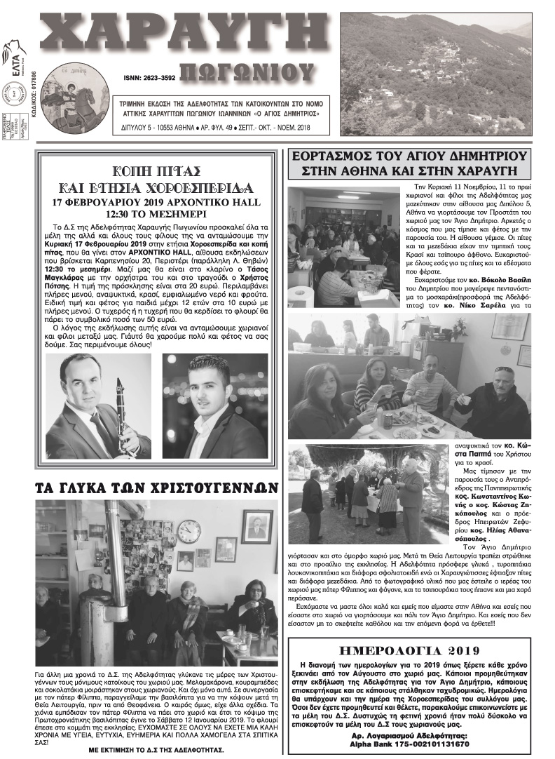 Εφημερίδα Αδελφότητας Χαραυγής Πωγωνίου.Αριθμ.Φύλλου 49.Σεπτέμβριος-Οκτώβριος-Νοέμβριος 2018.