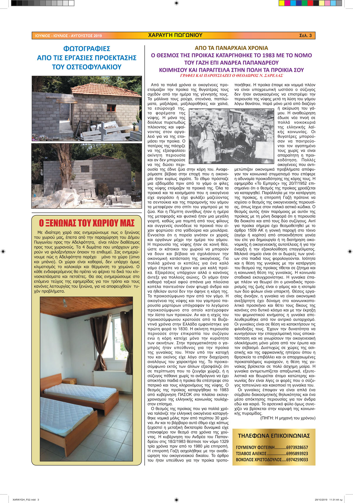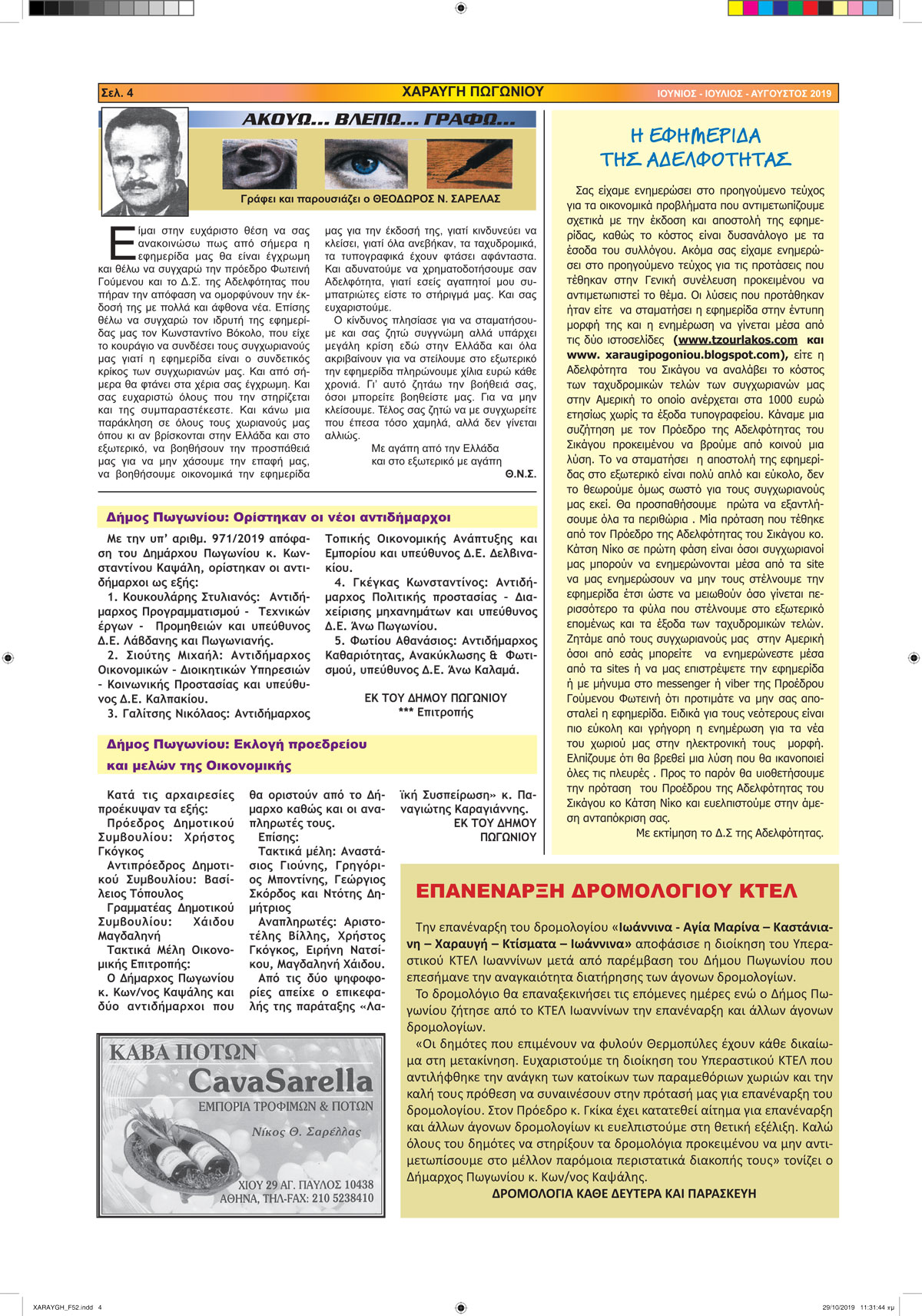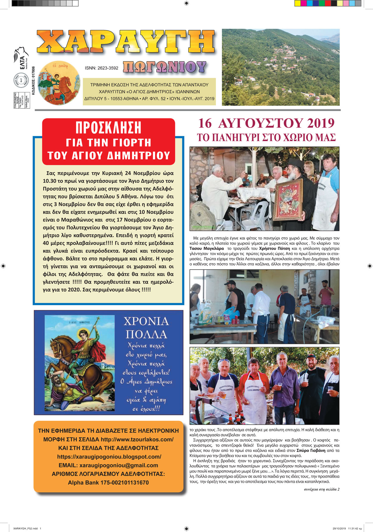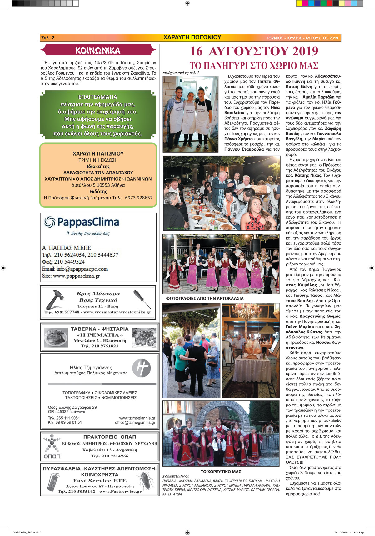 Εφημερίδα Αδελφότητας Χαραυγής Πωγωνίου.Αριθμ.Φύλλου 52.Ιούνιος-Ιούλιος-Αύγουστος 2019.