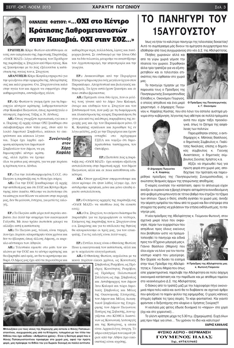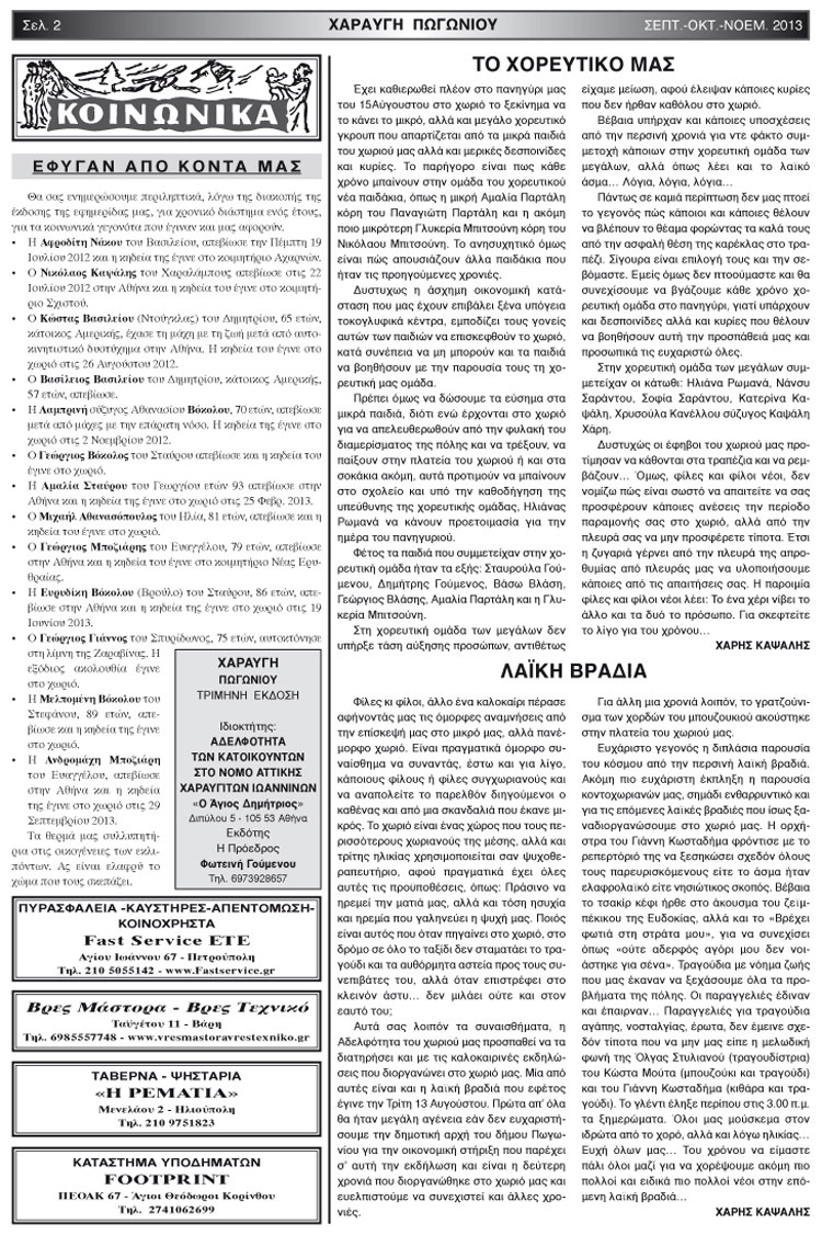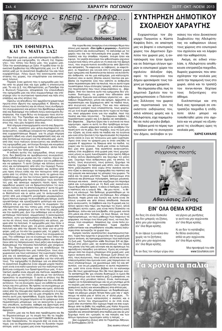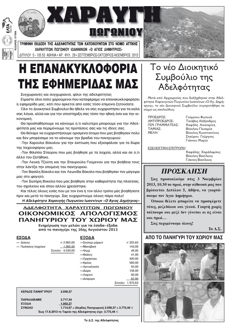 Εφημερίδα Αδελφ/τας Χαραυγής Πωγωνίου.Αρθμ.Φύλλου 29.Σεπτέμβριος-Οκτωβριος-Νοέμβριος 2013