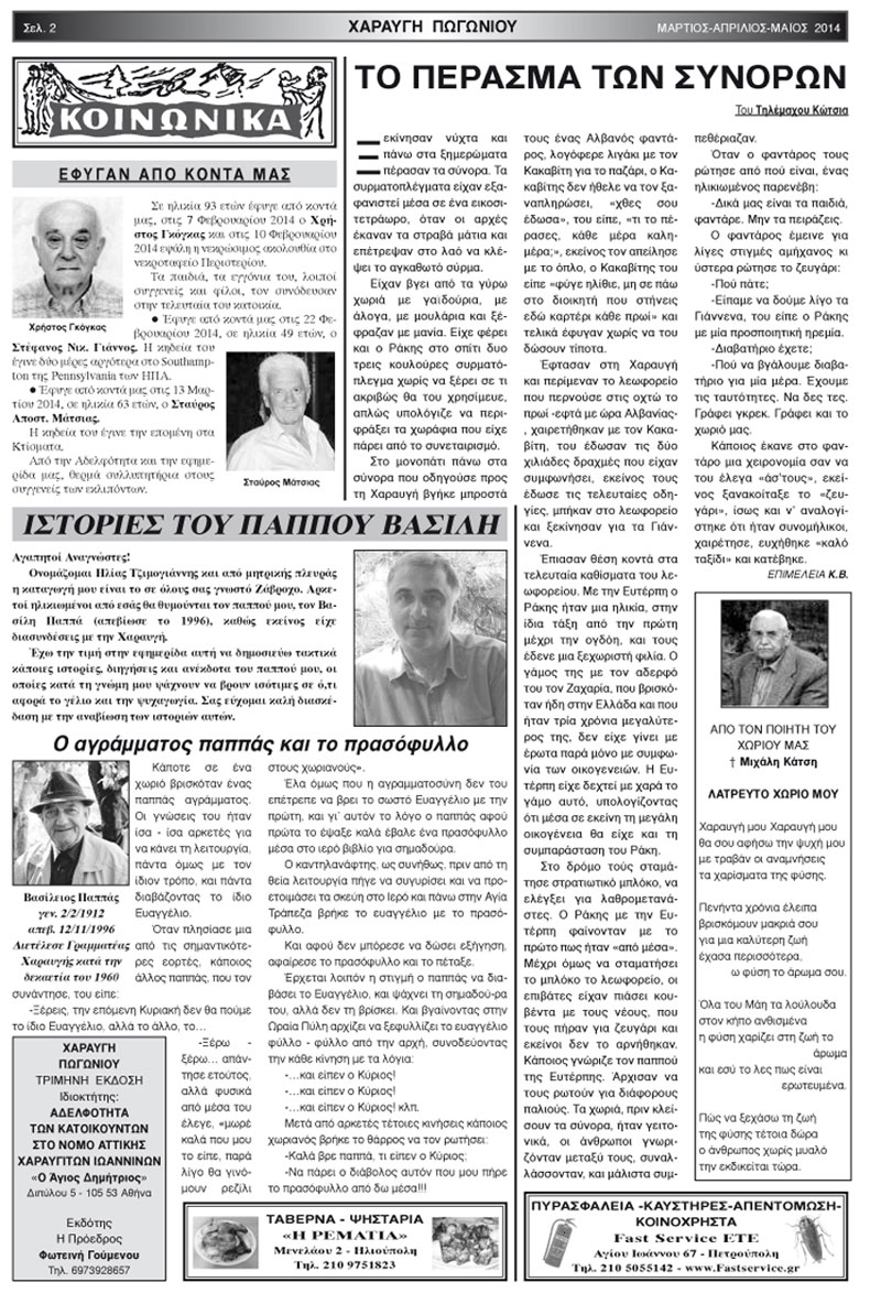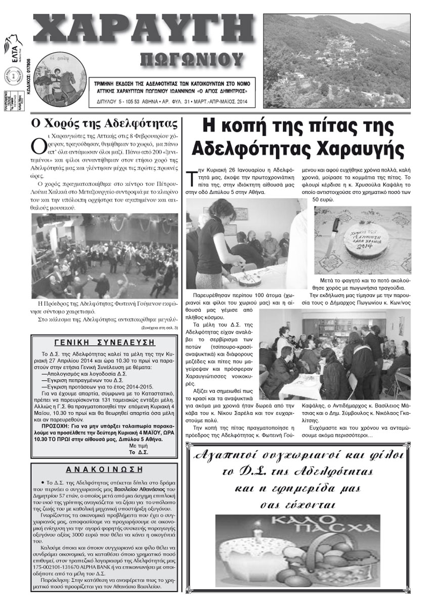 Εφημερίδα Αδελφότητας Χαραυγής Πωγωνίου.Αρθμ.Φύλλου 31. Μάρτιος-Απρίλιος-Μάϊος 2014 Εφημερίδα Αδελφότητας Χαραυγής Πωγωνίου.Αρθμ.Φύλλου 31. Μάρτιος--Απρίλιος--Μάϊος 2014 Σελίδα 1 Σελίδα 2 Σελίδα 3 Σελίδα 4 Tweet Προηγούμενο Επόμενο