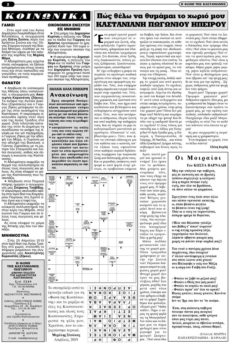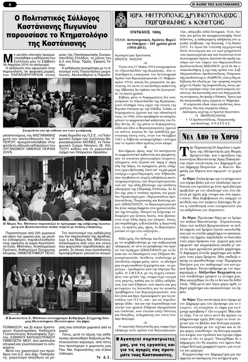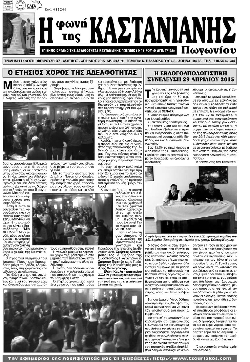 Εφημερίδα Αδελφότητας Καστάνιανης Πωγωνίου,Αριθμός Φύλλου 91.Φεβρουάριος--Μάρτιος--Απρίλιος 2015