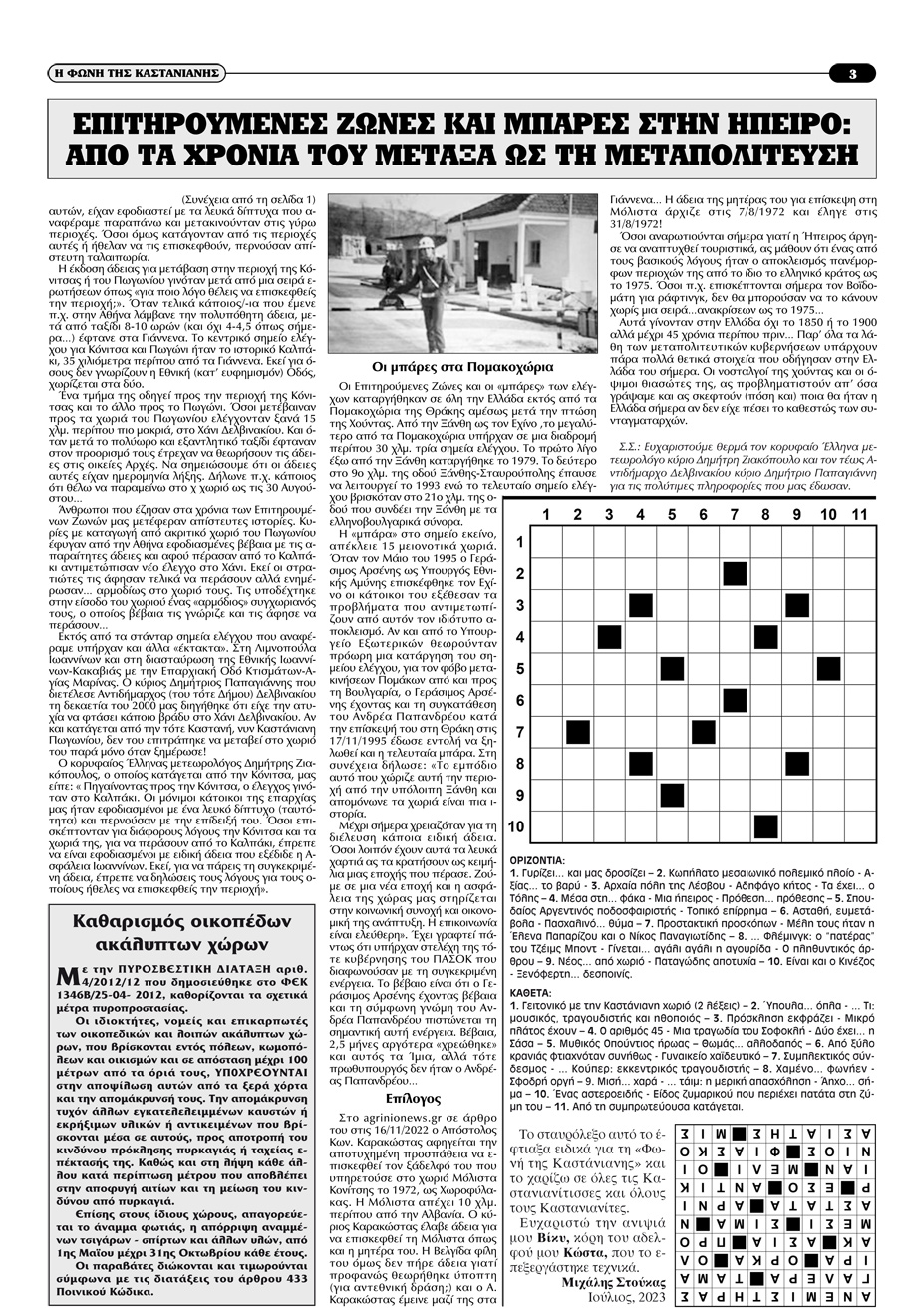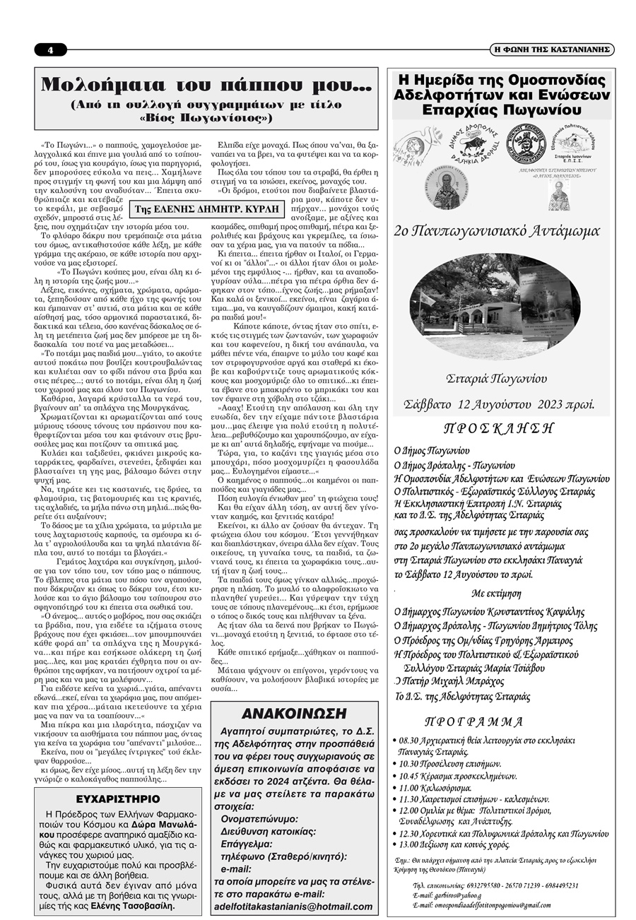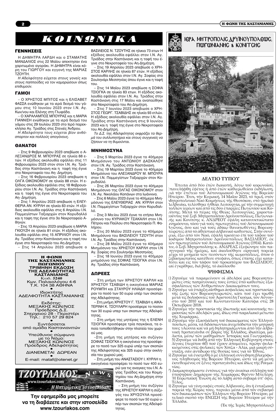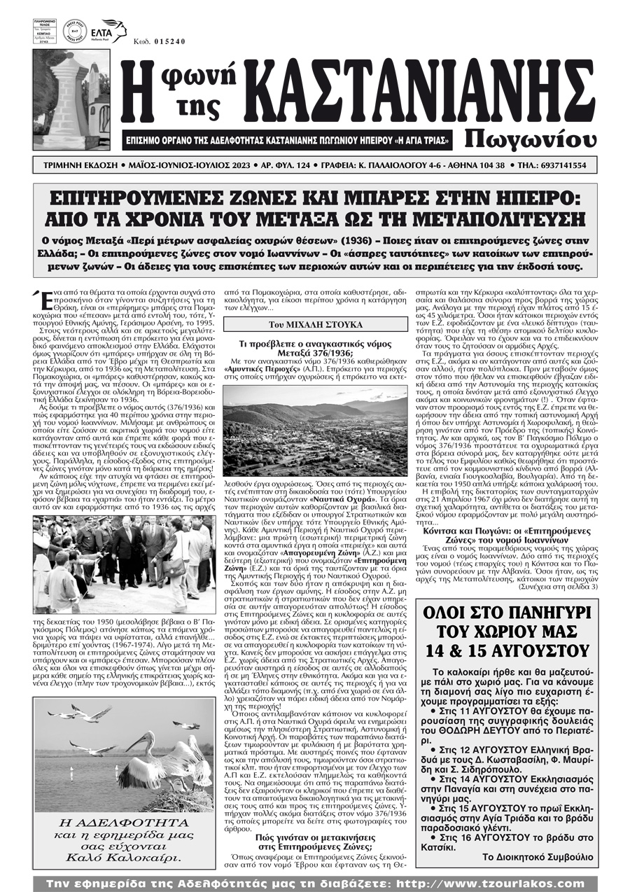 Εφημερίδα Αδελφότητας Καστάνιανης Πωγωνίου.Αριθμ.Φύλλου 124.Μάιος-Ιούνιος-Ιούλιος 2023