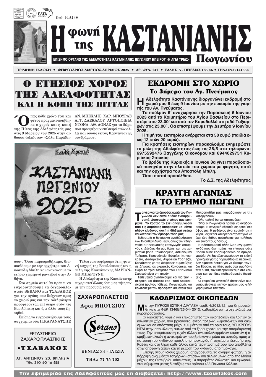Εφημερίδα Αδελφότητας Καστάνιανης Πωγωνίου. Αριθμ.Φύλλου 131.Φεβρουάριος-Μάρτιος-Απρίλιος 2025.