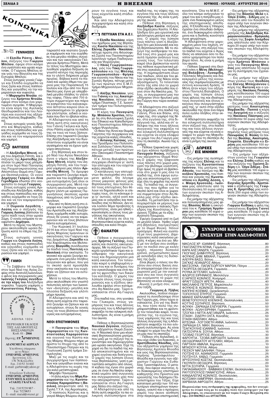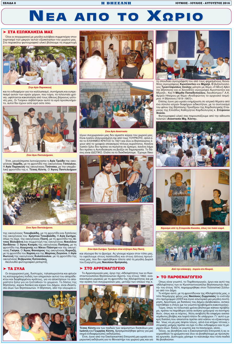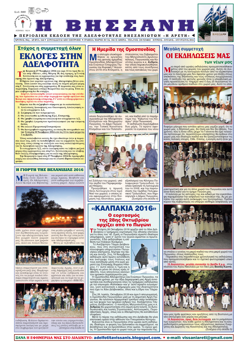 Εφημερίδα Αδελφ/τας Βήσσανης Πωγωνίου.Αρθμ.Φύλλου 164.Ιούνιος-Ιούλιος-Αύγουστος 2016