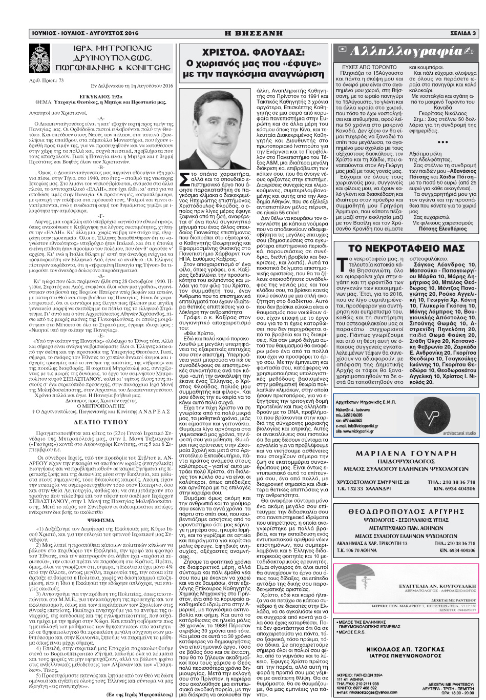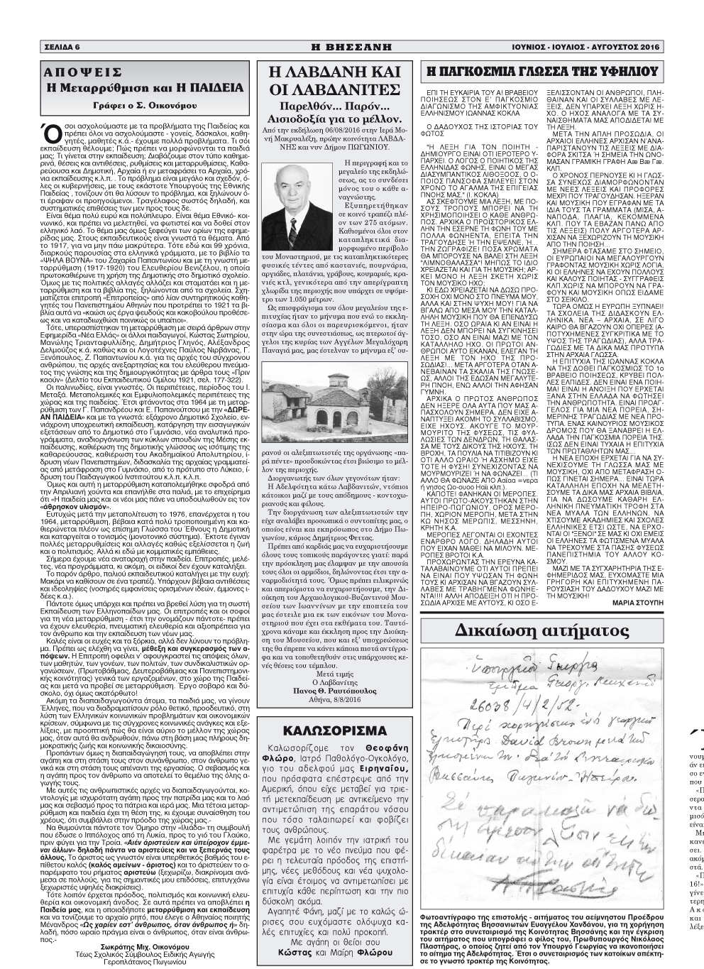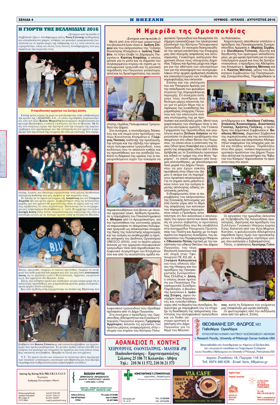 Εφημερίδα Αδελφ/τας Βήσσανης Πωγωνίου.Αρθμ.Φύλλου 164.Ιούνιος-Ιούλιος-Αύγουστος 2016