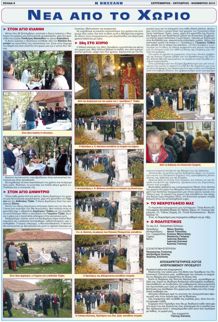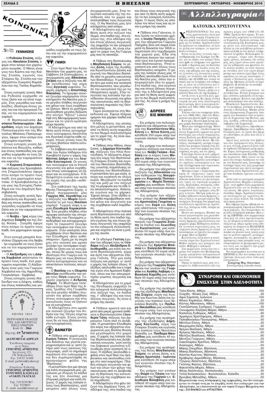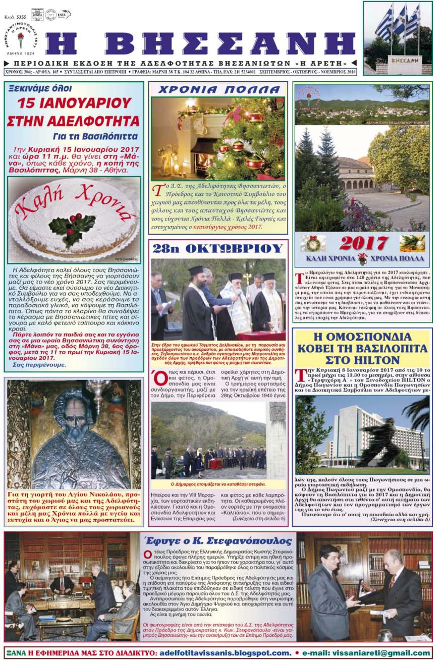 Εφημερίδα Αδελφ/τας Βήσσανης Πωγωνίου.Αριθμός Φύλλου 165.Σεπτέμβριος-Οκτώβριος-Νοέμβριος 2016