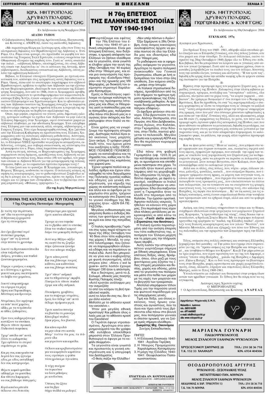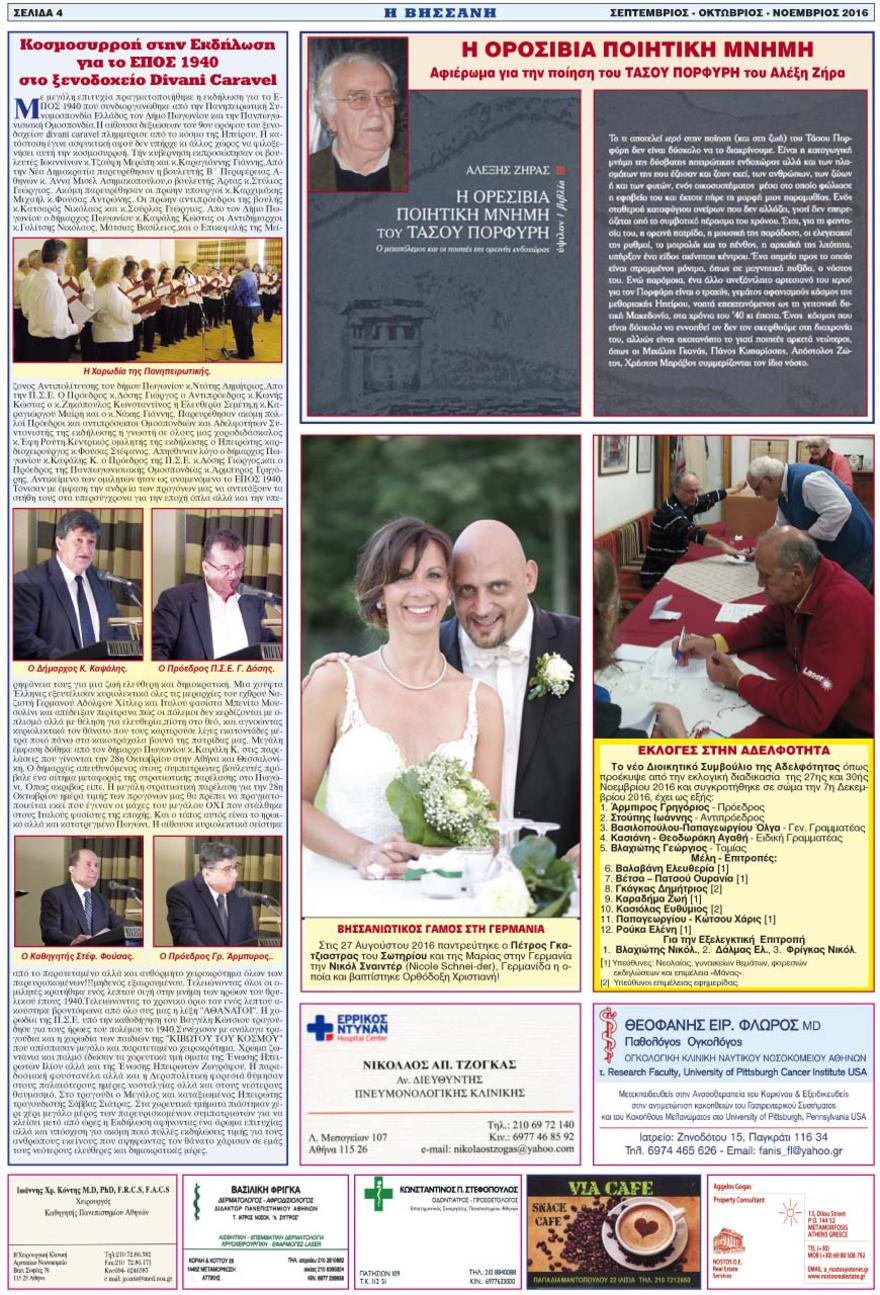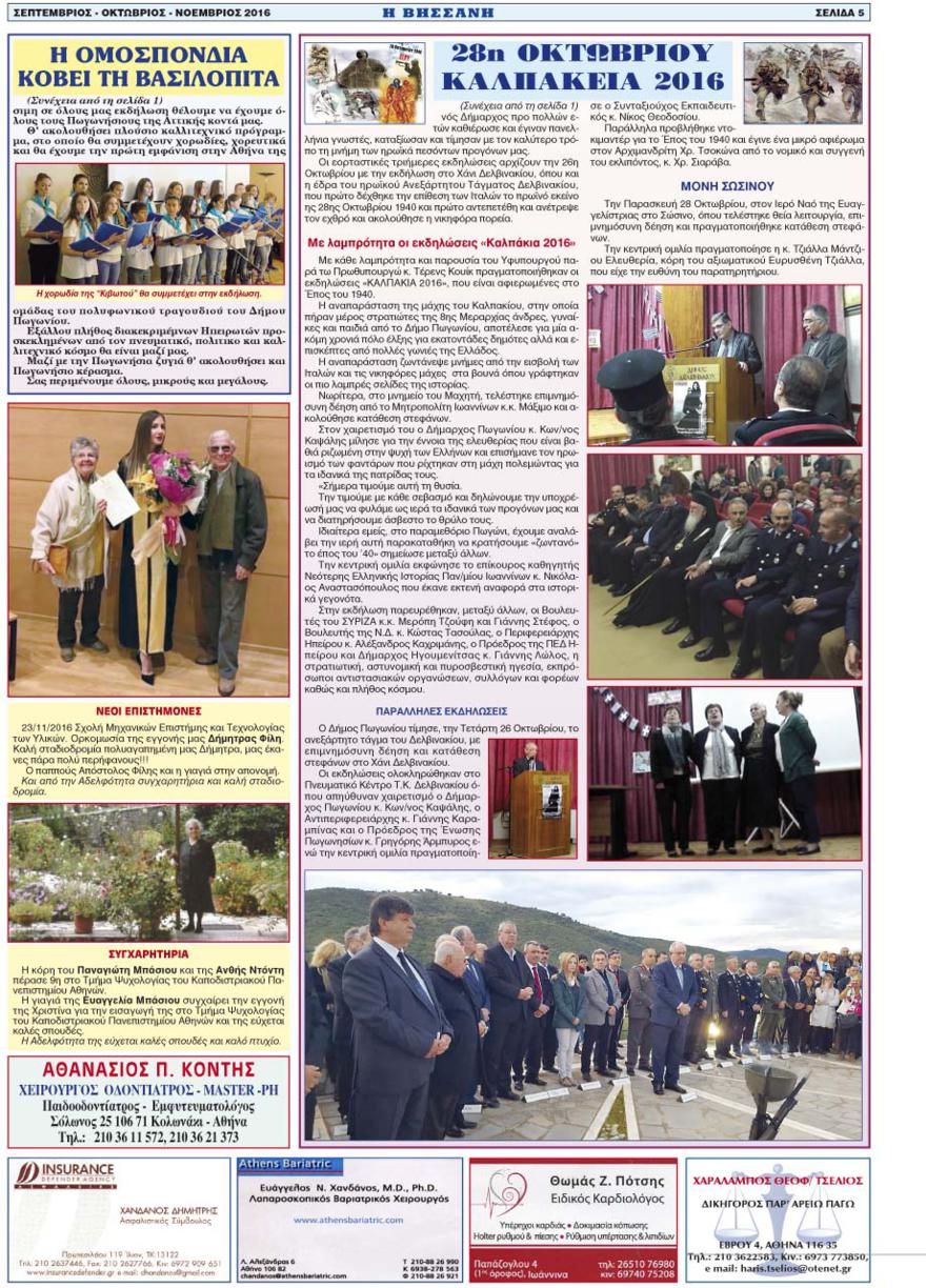 Εφημερίδα Αδελφ/τας Βήσσανης Πωγωνίου.Αριθμός Φύλλου 165.Σεπτέμβριος-Οκτώβριος-Νοέμβριος 2016