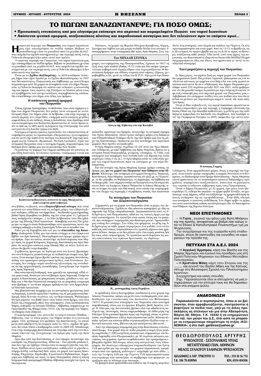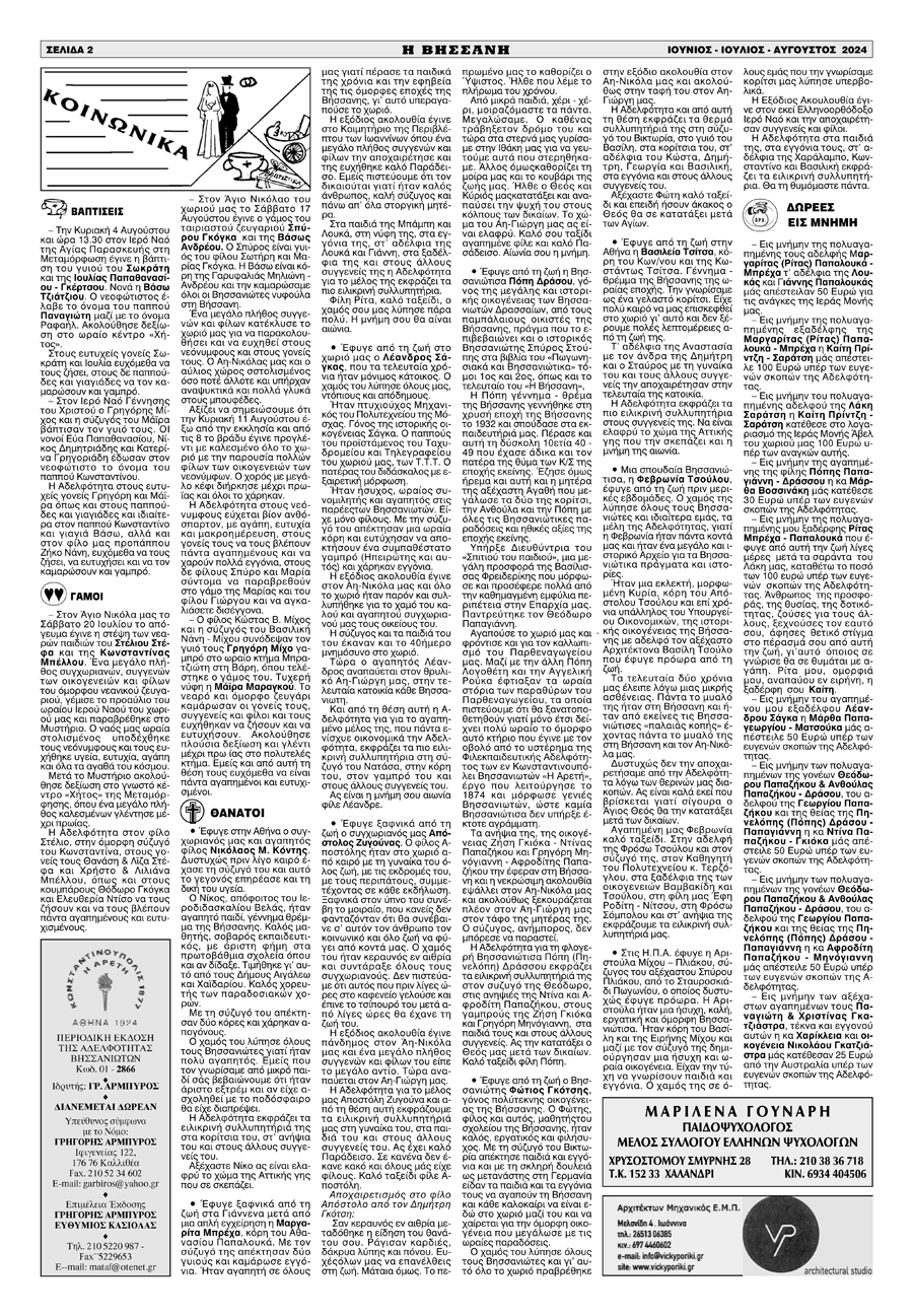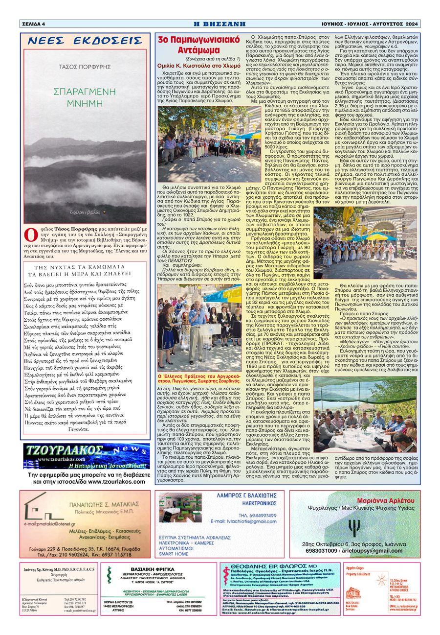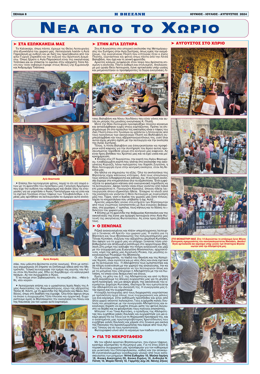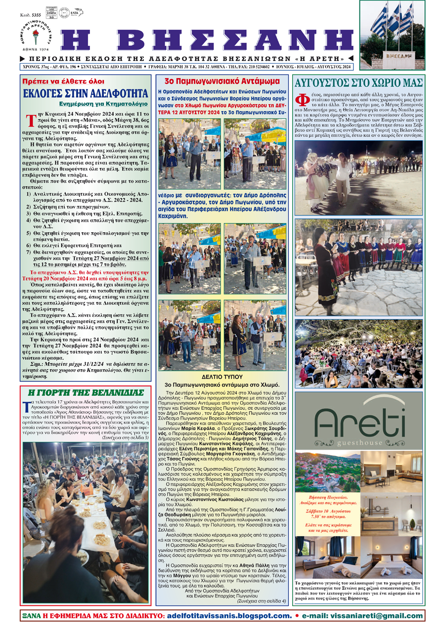 Εφημερίδα Αδελ. Βήσσανης Πωγωνίου. Αρθμ. Φύλλου 196.Ιούνιος-Ιούλιος-Αύγουστος 2024.