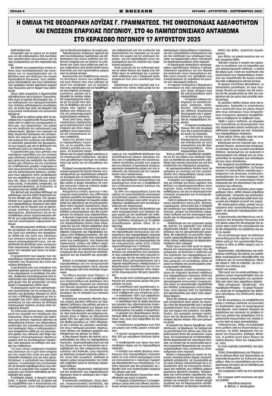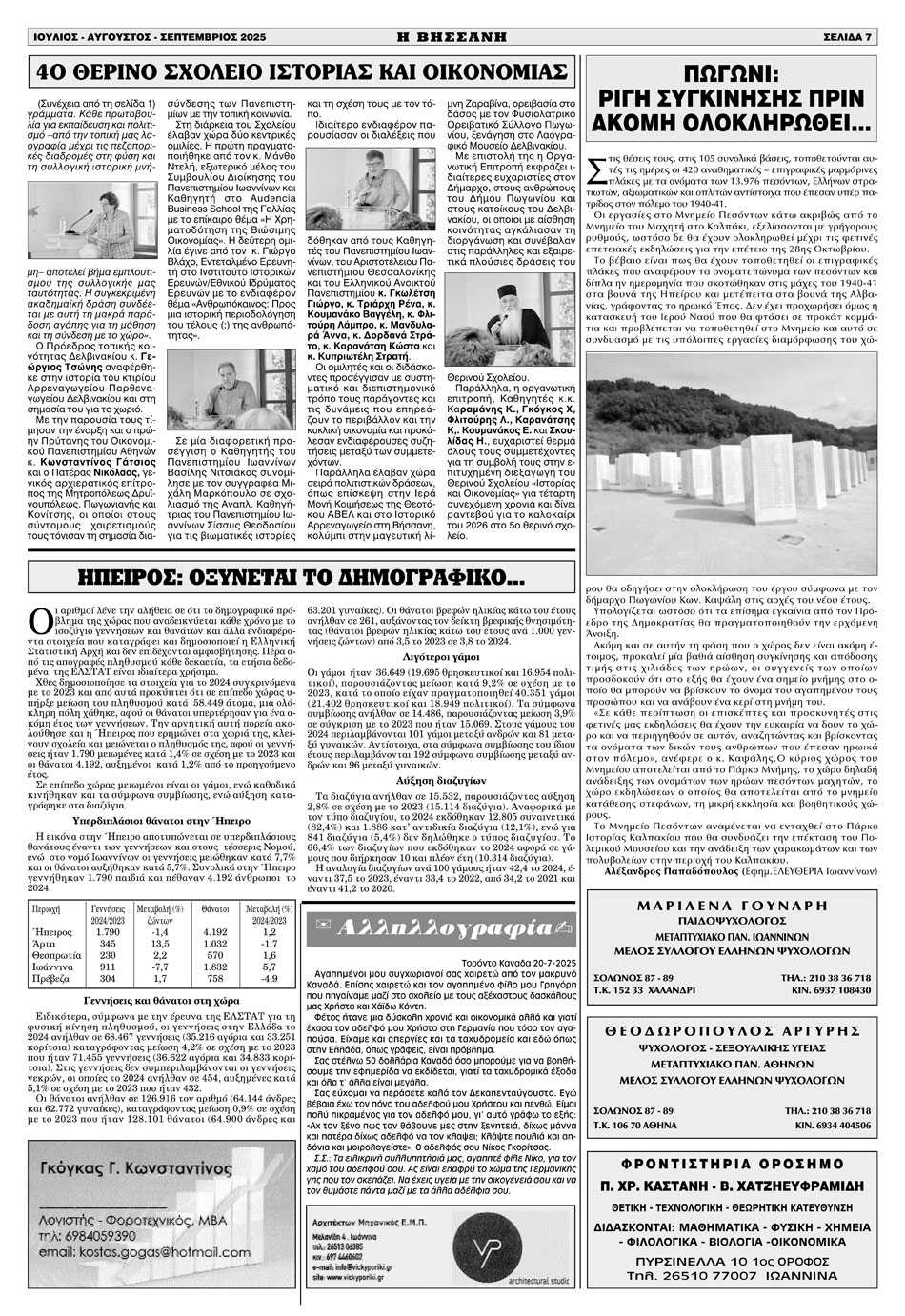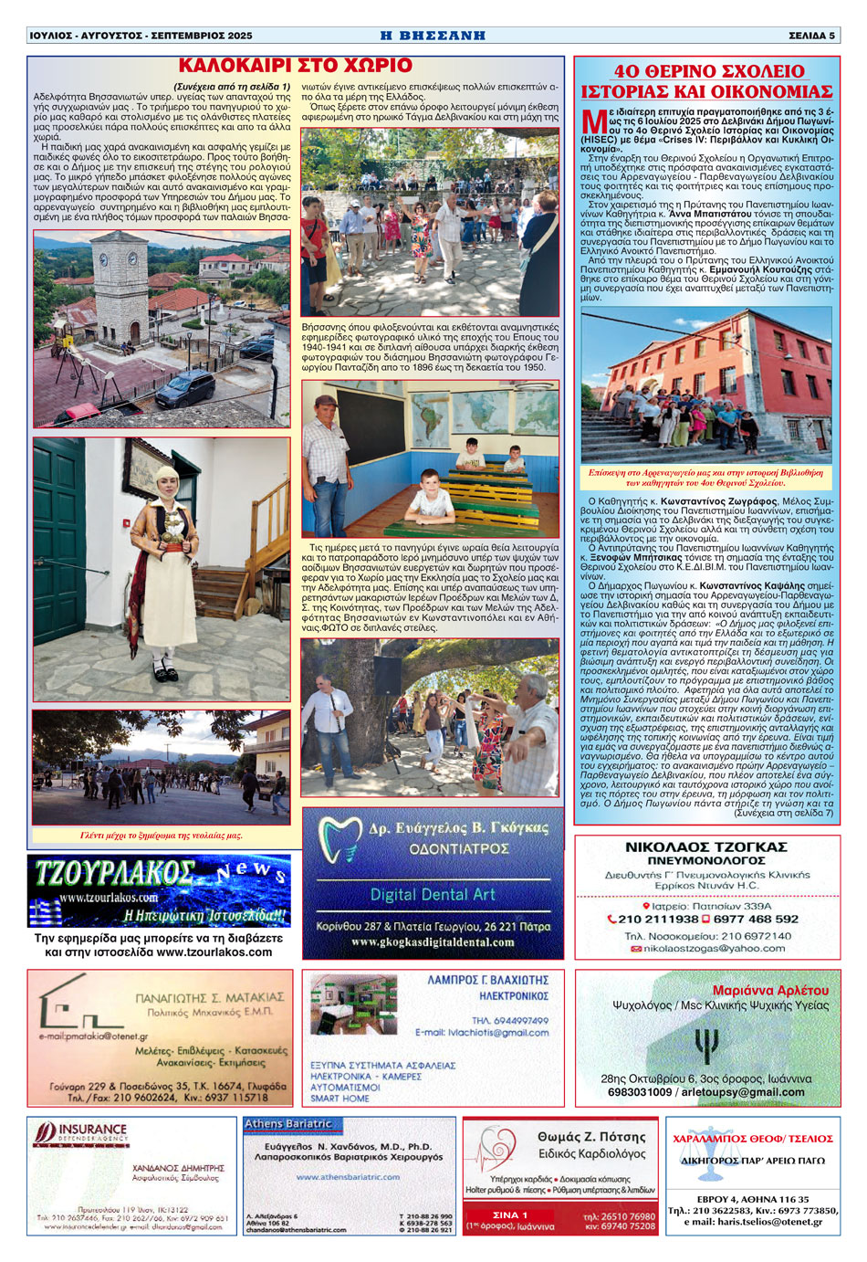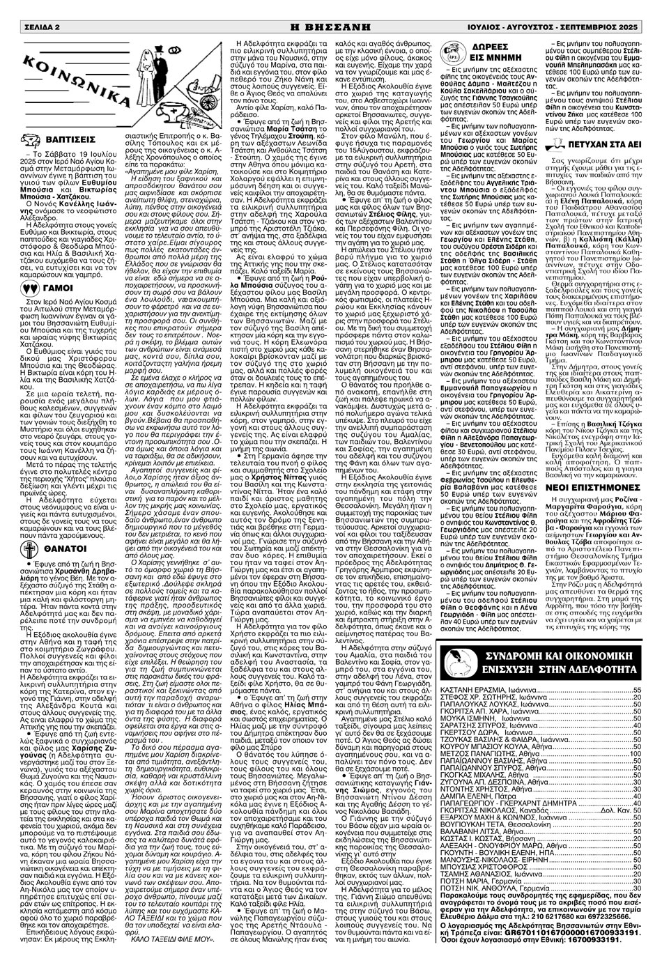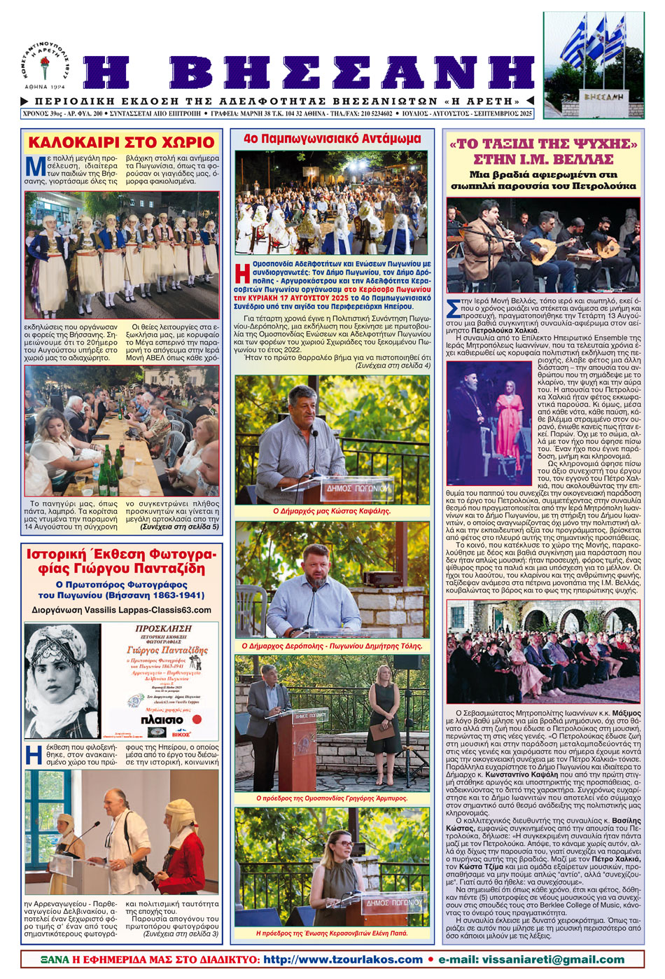 Εφημερίδα Αδελ. Βήσσανης Πωγωνίου. Αρθμ. Φύλλου 200.Ιούλιος-Αύγουστος-Σεπτέμβριος 2025.