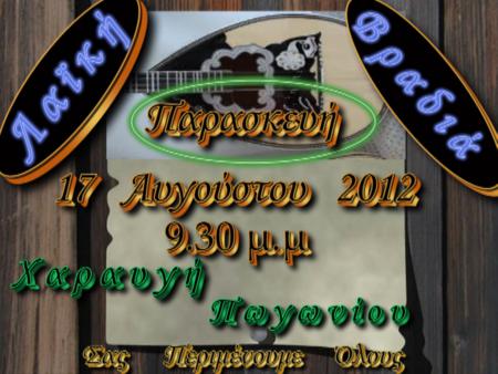 ΛΑΙΚΗ ΒΡΑΔΙΑ 17 Αυγούστου 2012