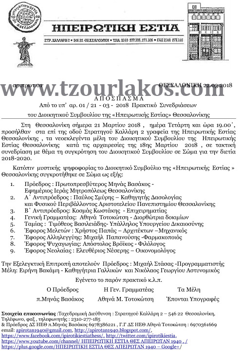 Νέο Διοικητικό Συμβούλιο στην Ηπειρωτική Εστία Θεσσαλονίκης