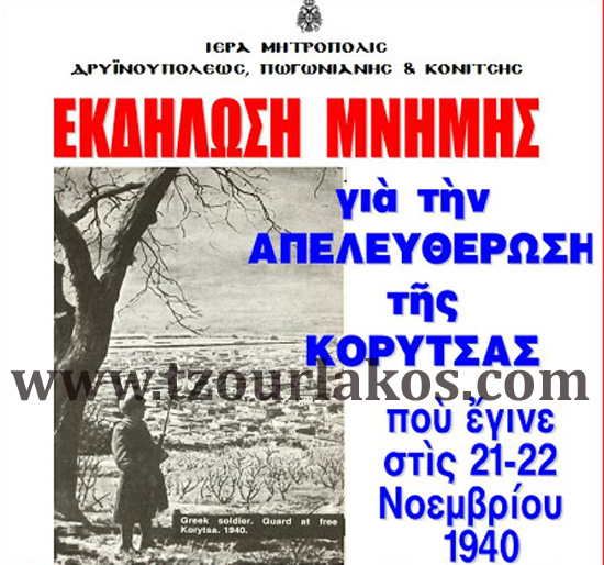 ΕΚΔΗΛΩΣΗ στην Κόνιτσα απὸ την Ιερά Μητρόπολη για την ΑΠΕΛΕΥΘΕΡΩΣΗ της ΚΟΡΥΤΣΑΣ από τον ελληνικό στρατό (21-22 Νοεμβρίου 1940)