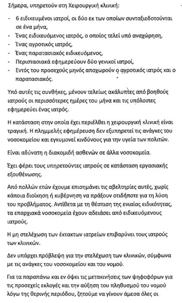 Αναφορά του συνόλου των γιατρών της Χειρουργικής Κλινικής του Γενικού Νοσοκομείου Άρτας που μας κοινοποιήθηκε και δηλώνουμε την αμέριστη στήριξη μας.