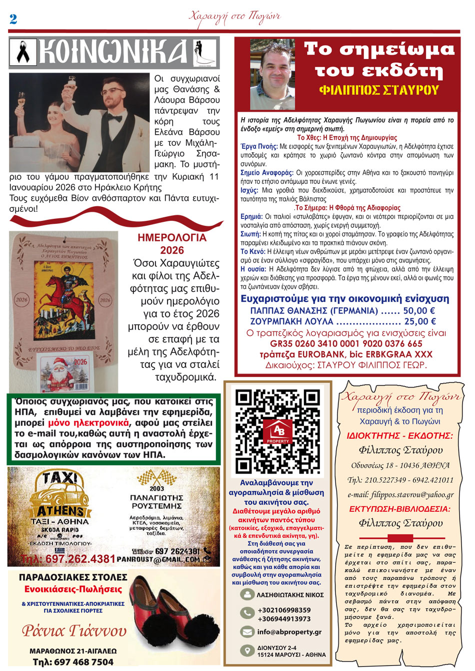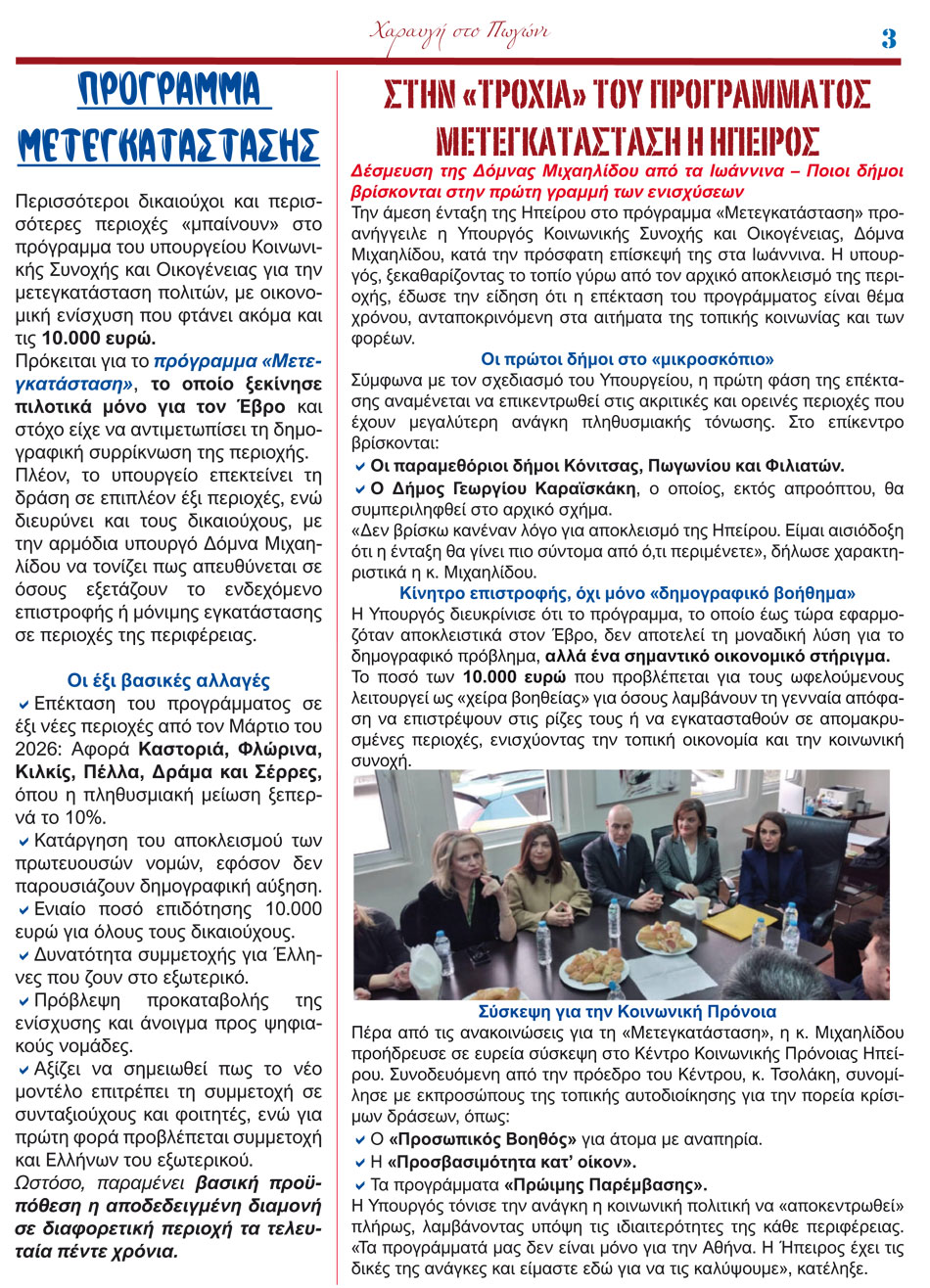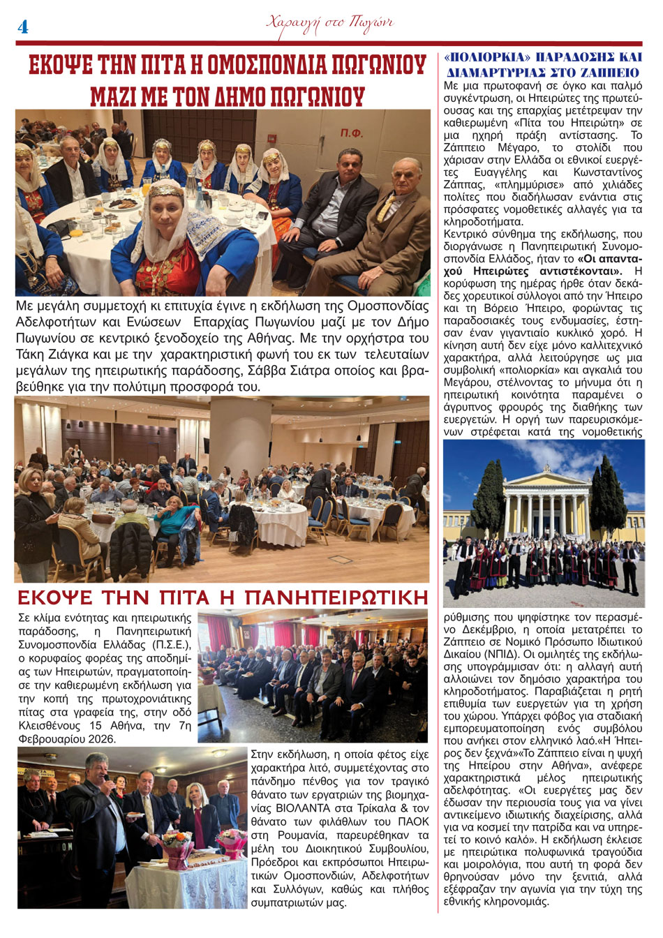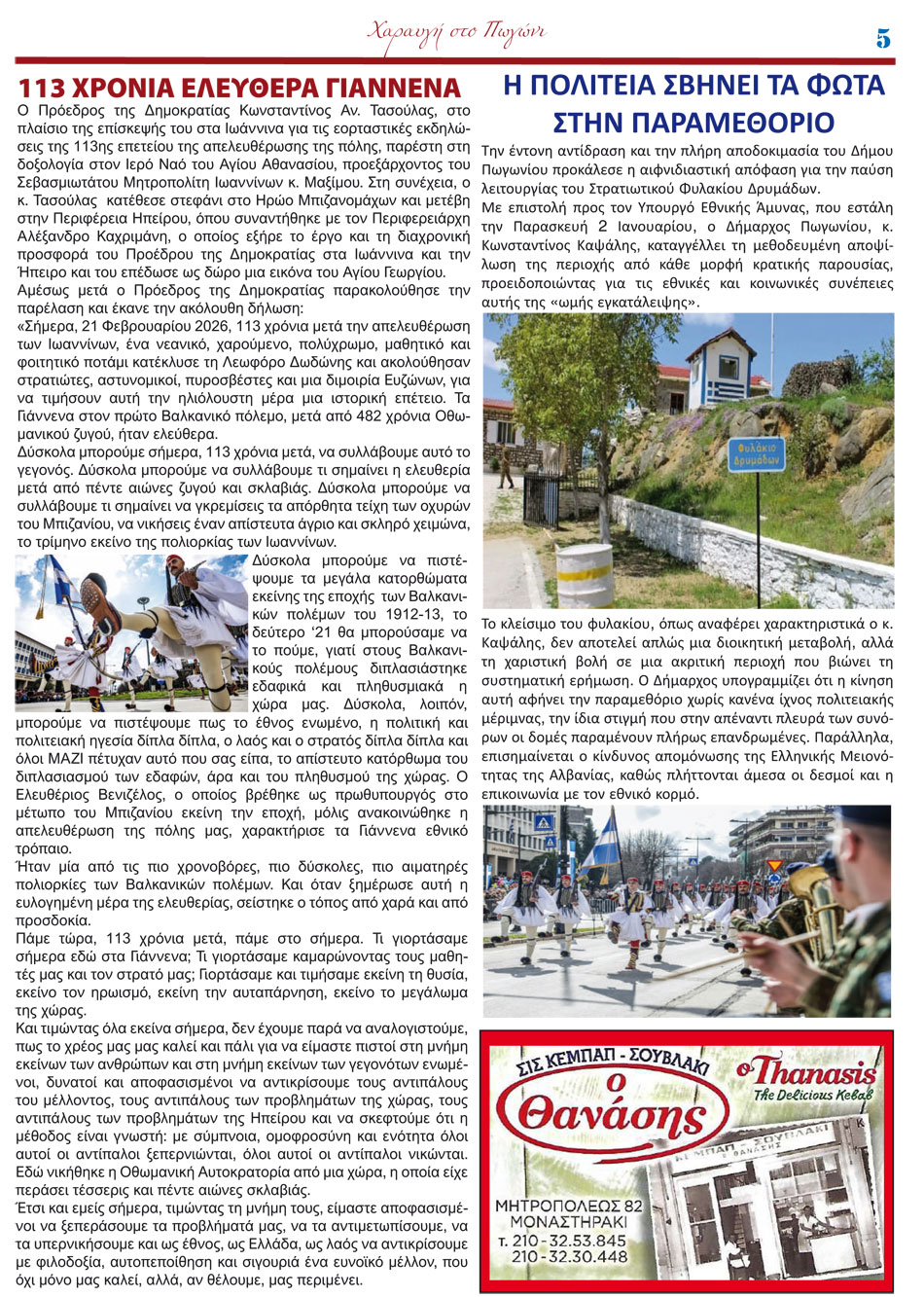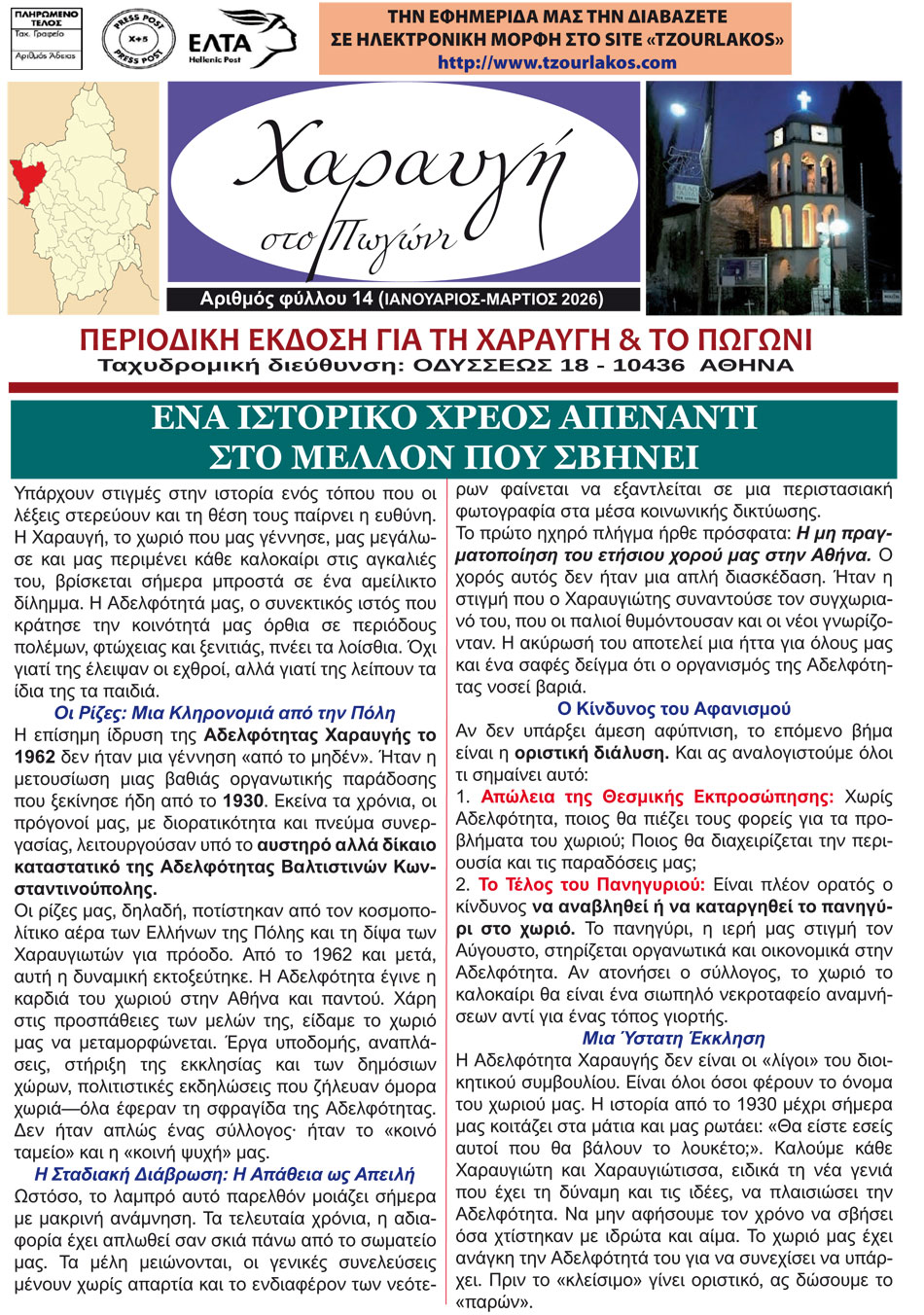 Εφημερίδα. ''Χαραυγή στο Πωγώνι''. Αριθμ. Φύλλου 14.Ιανουάριος-Φεβρουάριος-Μάρτιος 2026.