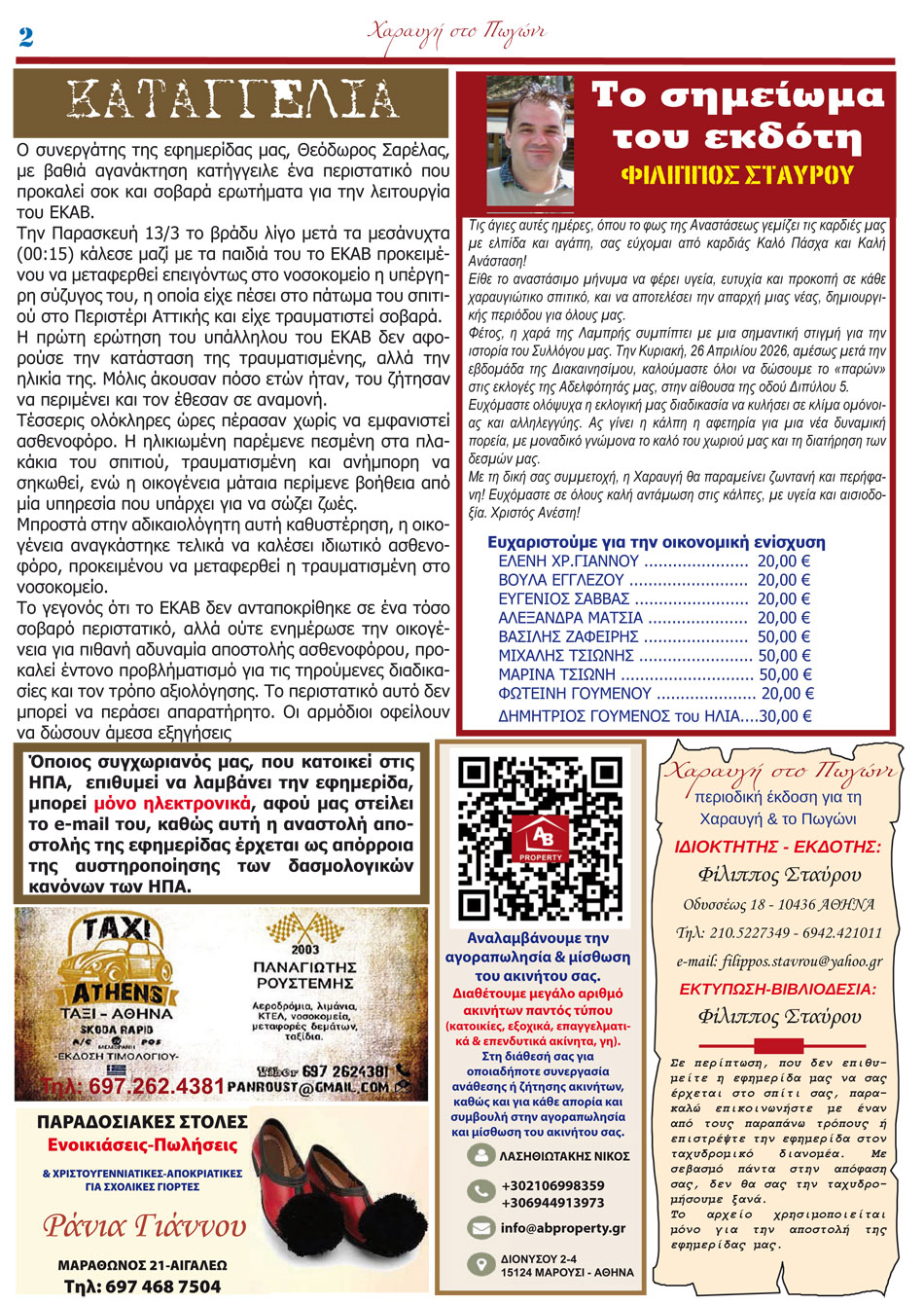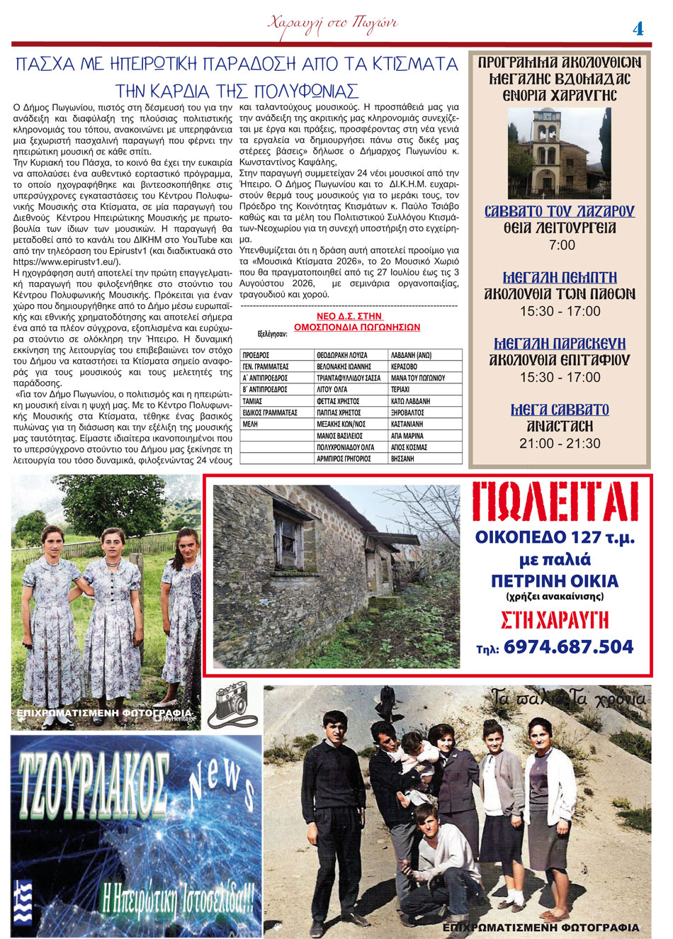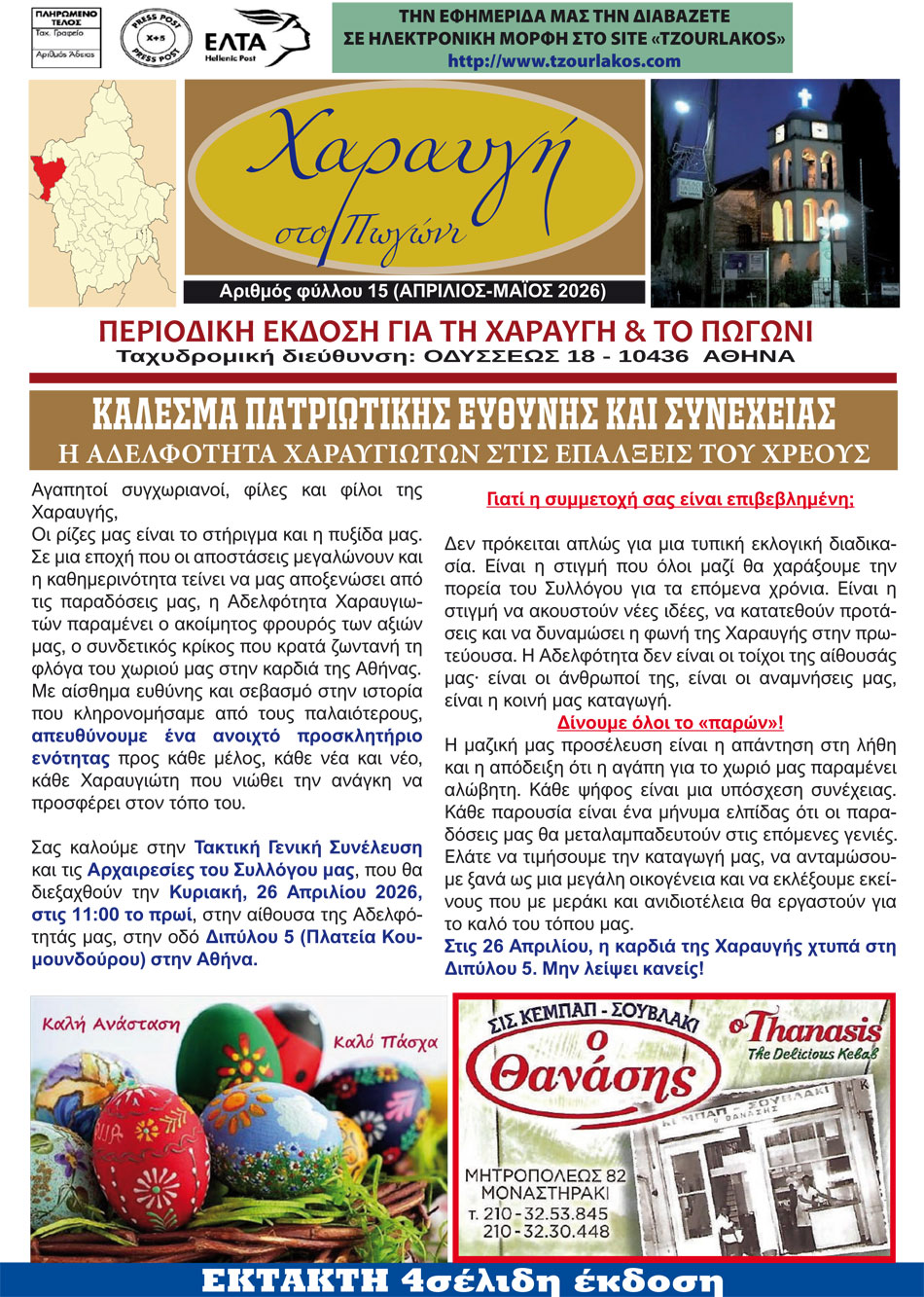 Εφημερίδα. ''Χαραυγή στο Πωγώνι''. Αριθμ. Φύλλου 15.Ιανουάριος-Φεβρουάριος-Μάρτιος 2026.