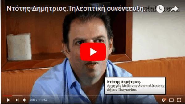 Είναι μια συνέντευξη εφ`όλης της ύλης.Μια συνέντευξη που σας γνωρίζει πραγματικά πρώτα απ`όλα τον άνθρωπο Δ.Ντότη και μετα αυτό που δραστηριοποιείται.Είναι μια συνέντευξη που θα αποκομίσετε ασφαλή συμπεράσματα αφού τον έχω (οργώσει) κυριολεκτικά στις ερωτήσεις για να μπορέσω να σας δείξω του προφίλ αυτού του ανθρώπου του συμπατριώτη μας του κ.Ντότη Δημήτρη αφού σε πολλά σημεία αυτής της συνέντευξης βγαίνει στη φόρα και το συναίσθημα που όσο και να θέλουμε κάποιες φορές δεν μπορούμε να το κρύψουμε.Θα μου πείτε κάποιοι...Ρε φίλε είναι πολύς ο χρόνος της συνέντευξης...Θα σας απαντήσω μεμιάς πώς: Για να γνωρίσεις έναν άνθρωπο πρέπει να διαθέσεις πραγματικό χρόνο τηλεγνωριμίας και όχι τον τηλεοπτικό χρόνο μιας απλής συνέντευξης.