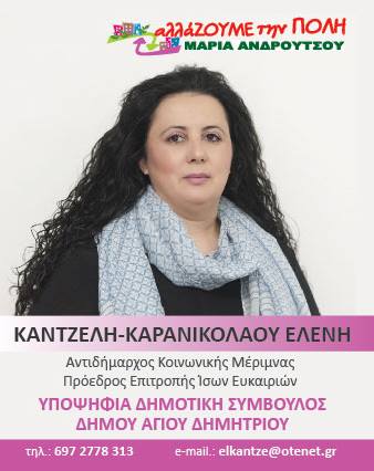 Η Ελένη Καντζέλη-Καρανικολάου, Πρόεδρος του Συλλόγου Απανταχού Κραψιτών Ιωαννίνων και Αντιδήμαρχος Αγίου Δημητρίου Αττικής, ξανά υποψήφιος Δημοτικός Σύμβουλος με το ψηφοδέλτιο της Μαρίας Ανδρούτσου ''Αλλάζουμε την πόλη''