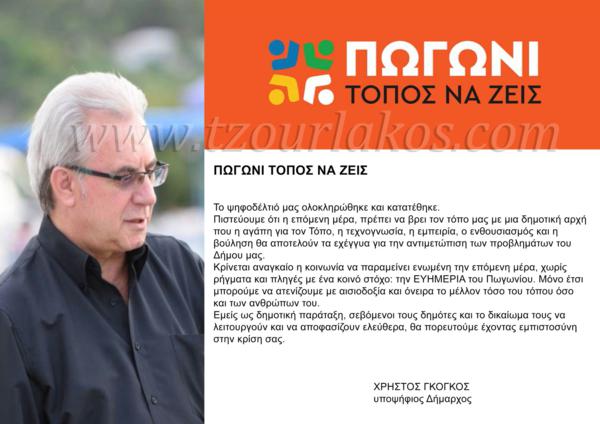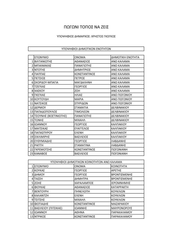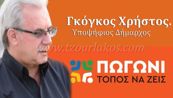 Δήμος Πωγωνίου: Γκόγκος Χρήστος. Κατάθεση υποψηφιότητας της Δημοτικής Παράταξης... Γκόγκος Χρήστος. Κατάθεση υποψηφιότητας της Δημοτικής Παράταξης. ''ΠΩΓΩΝΙ ΤΟΠΟΣ ΝΑ ΖΕΙΣ''. Όλα τα ονόματα των υποψηφίων. Tweet Προηγούμενο Επόμενο