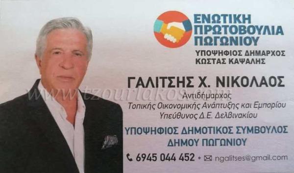 Με σεβασμό σε εσάς και όσα πρεσβεύει η μακρά ιστορία του Πωγωνίου και της περιοχής ζητώ και πάλι τη στήριξή σας στις εκλογές της 8ης Οκτωβρίου.