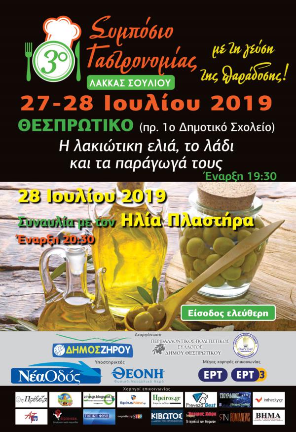 Το Σαββατοκύριακο 27 & 28 Ιουλίου το 3ο Συμπόσιο Γαστρονομίας Λάκκας Σουλίου στο Θεσπρωτικό