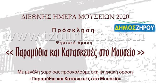Την Κυριακή 17 Μαΐου η ψηφιακή δράση: «Παραμύθια και Κατασκευές στο Μουσείο» με συνδιοργανωτές το ΚΔΑΠ Δήμου Ζηρού και τη Λαογραφική Συλλογή «Γεώργιος Γιάννος»
