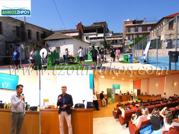 Πραγματοποιήθηκε με εξαιρετική επιτυχία η εκδήλωση βράβευσης των Σχολείων του Δήμου Ζηρού για τη συμμετοχή τους στον Σχολικό Μαραθώνιο Ανακύκλωσης. Τα παιδιά είχαν την ευκαιρία να ψυχαγωγηθούν στον αθλητικό χώρο παρακείμενα του Δημαρχείου Φιλιππιάδας όπου τοποθετήθηκαν εκπαιδευτικά επιδαπέδια παιχνίδια με θέμα την ανακύκλωση και την προστασία του περιβάλλοντος. Κατά την εκδήλωση βράβευσης, την οποία διοργάνωσε ο Δήμος σε συνεργασία με την Followgreen και την υποστήριξη της Ελληνικής Εταιρίας Αξιοποίησης Ανακύκλωσης, της Recycom και της «Αειφορικής Ηπείρου» τα πρώτα Σχολεία σε ανακύκλωση υλικών και πόντων επιβράβευσης, παρέλαβαν από ένα χρηστικό δώρο για τη σχολική τους μονάδα.