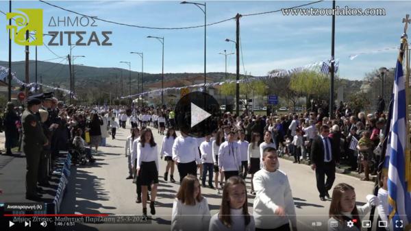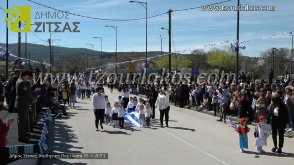 Πλήθος κόσμου στη μαθητική παρέλαση του Δήμου Ζίτσας για τον εορτασμό της Εθνικής Επετείου Σάββατο 25η Μαρτίου 2023.