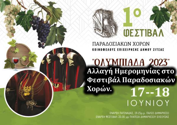 Διήμερο φεστιβάλ παραδοσιακών χορών με την επωνυμία «ΟΛΥΜΠΙΑΔΑ 2023» διοργανώνει, για πρώτη φορά φέτος, η Κοινωφελής Επιχείρηση Δήμου Ζίτσας.