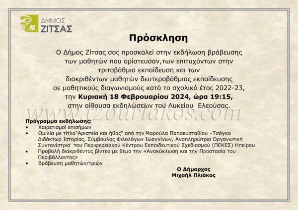 Δήμος Ζίτσας: Βράβευση μαθητών που αρίστευσαν... Βράβευση μαθητών που αρίστευσαν ... Θέλεις πραγματικά να γνωρίσεις την Ήπειρο;;Επισκέψου και κάνε εγγραφή στο κανάλι μας TZOURLAKOS στο youtube και διάλεξε ένα από τα 1300 βίντεο μέχρι στιγμής και συνεχίζουμε!... Tweet Προηγούμενο Επόμενο
