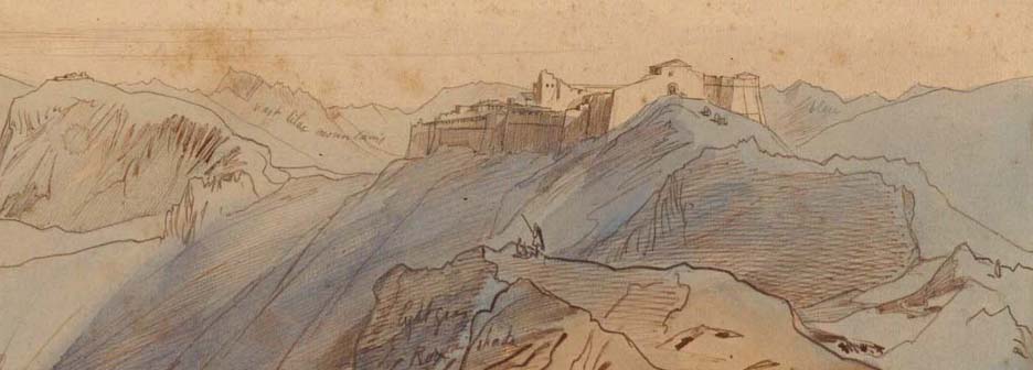 Στις 6 Μαΐου 1846 ο Edward Lear ήταν στο Σούλι και φιλοτέχνησε αυτήν τη πραγματικά εντυπωσιακή υδατογραφία. Στο βάθος διακρίνεται το φρούριο της Κιάφας ή κάστρο του Σουλίου. Διαστάσεις: 26χ43,4 εκ.