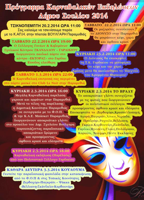 ΔΗΜΟΣ ΣΟΥΛΙΟΥ: Πρόγραμμα καρναβαλικών Εκδηλώσεων Δήμου Σουλίου