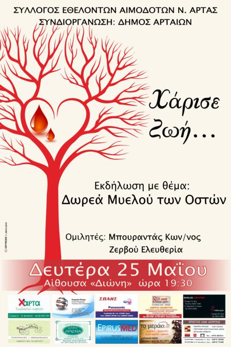 Θα μιλήσει ο κ. Κων/νος Μπουραντάς, καθηγητής Αιματολογίας-Παθολογίας και η κα. Ελευθερία Ζερβού, συντονίστρια Διευθύντρια Κέντρου Αίματος, του Πανεπιστημιακού Νοσοκομείου Ιωαννίνων.