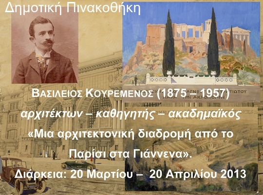 Την Τετάρτη 20 Μαρτίου 2013 και ώρα 19:00 εγκαινιάζεται στη Δημοτική Πινακοθήκη Ιωαννίνων η περιοδική έκθεση «Βασίλειος Κουρεμένος - Μια αρχιτεκτονική διαδρομή από το Παρίσι στα Γιάννενα».