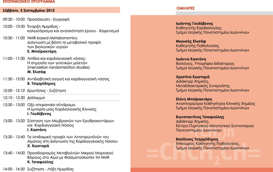 Η Ημερίδα αποτελεί πρωτοβουλία του Εργαστηρίου Κλινικής Χημείας, του Εξωτερικού Ιατρείου Διαταραχών του Μεταβολισμού των Λιπιδίων και Παχυσαρκίας, του Εξωτερικού Διαβητολογικού Ιατρείου και της Α’ Καρδιολογικής Κλινικής του Τμήματος Ιατρικής του Πανεπιστημίου Ιωαννίνων.