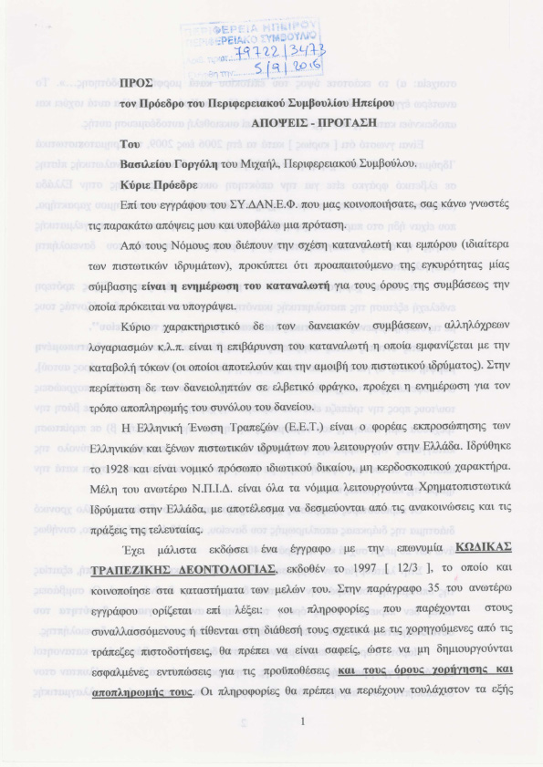 των δανειοληπτών σύμφωνα με την εισήγηση. Επίσης με πρόταση του