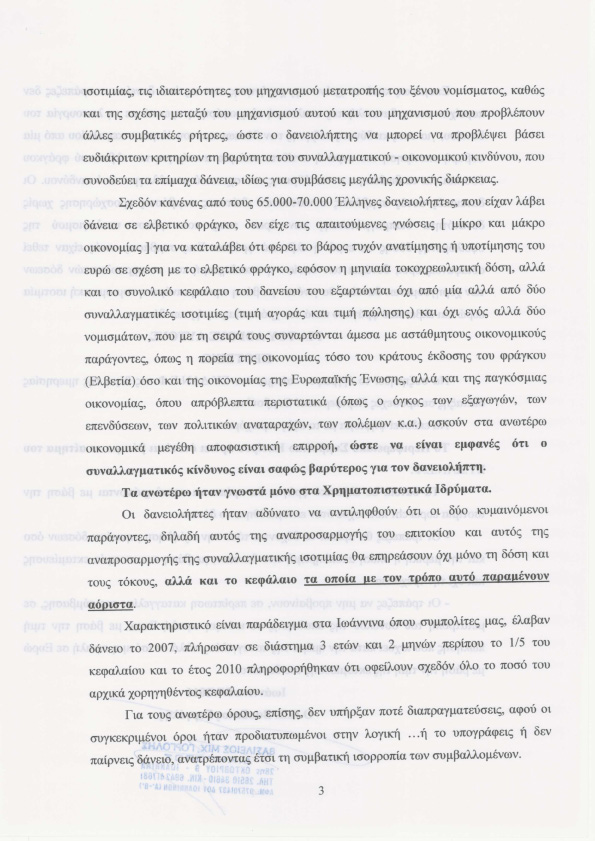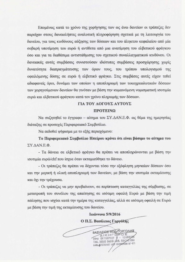 Περιφερειακό Συμβούλιο για τη στήριξη των δανειοληπτών με ελβετικό φράγκο.